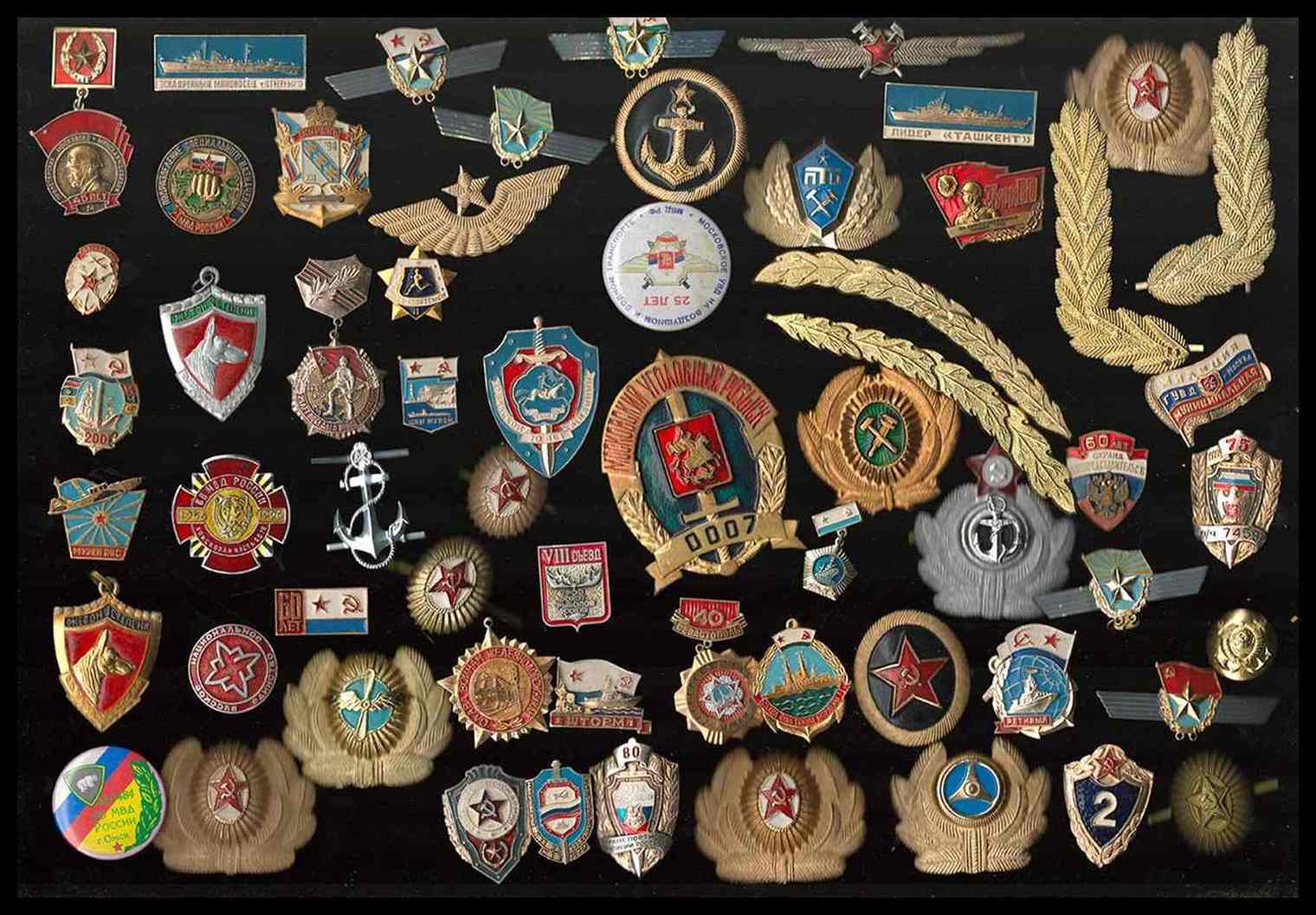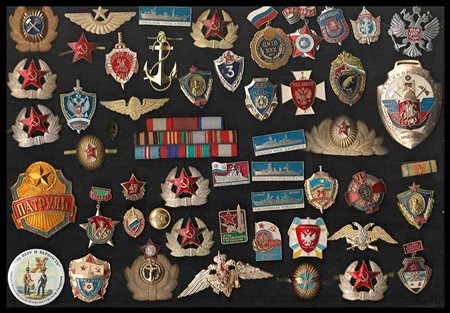 URSS/RUSSIA<br>Grande lotto di fregi e distintivi in alluminio