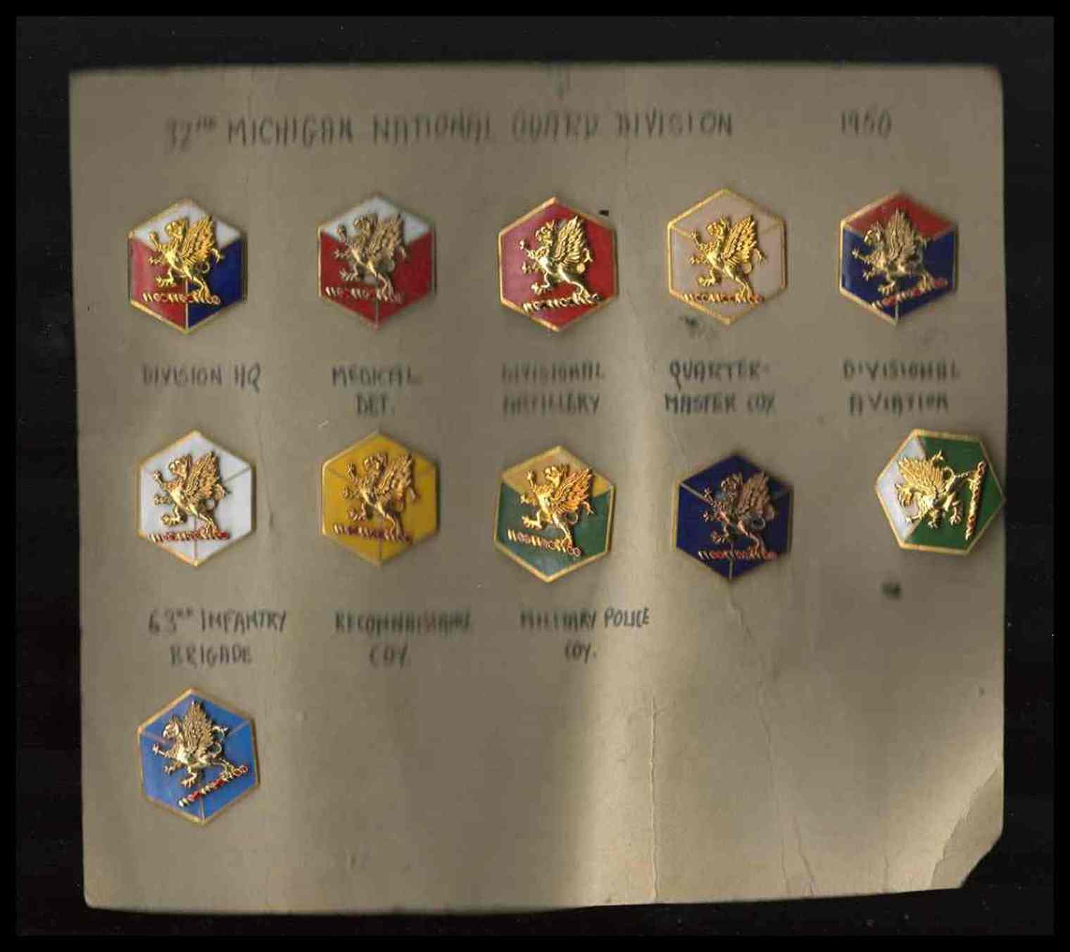 Lotto di 11 distintivi di Michigan National Guard division