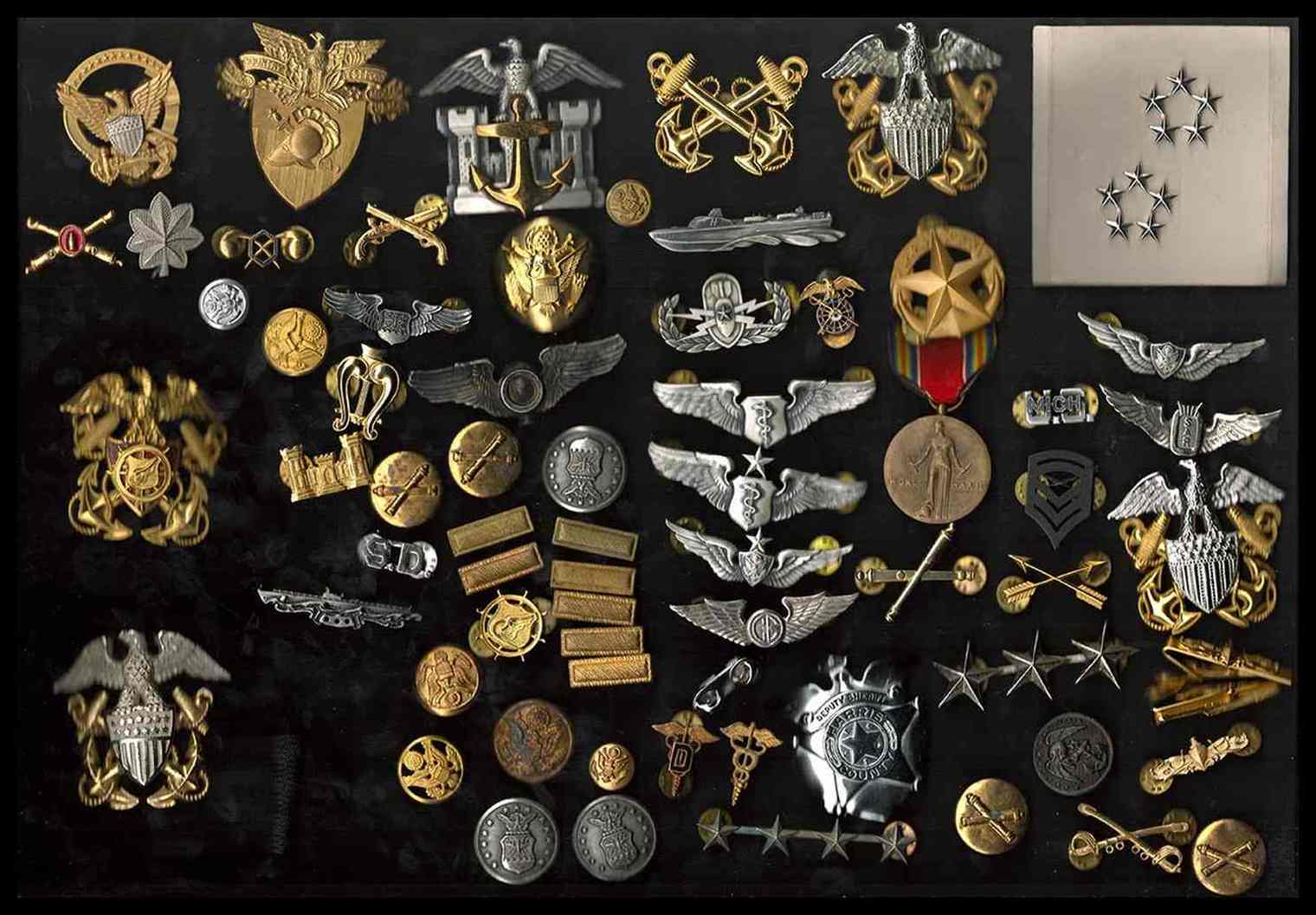 USA<br>Grande lotto di distintivi, fregi e brevetti