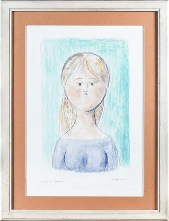 ANTONIO BUENO (1918-1984) Ritratto femminile litografia colorata a mano,...