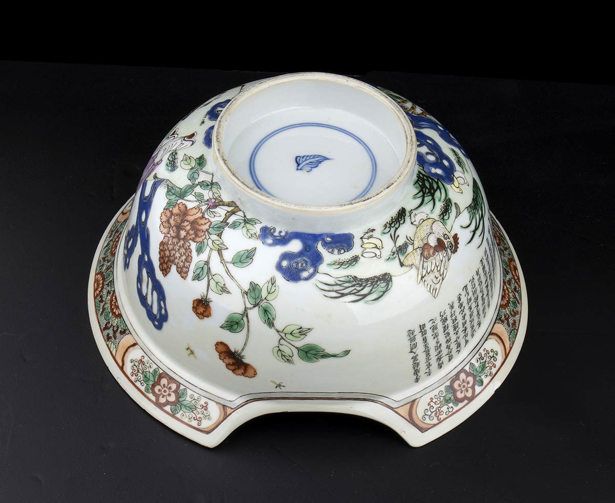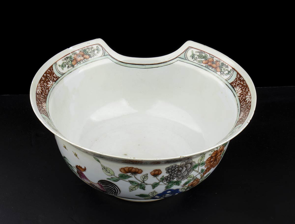 CIOTOLA DA BARBIERE IN PORCELLANA CON DECORO A SMALTI POLICROMI