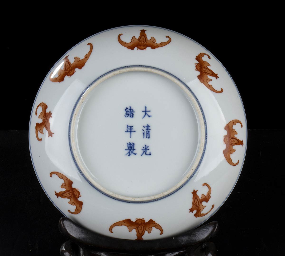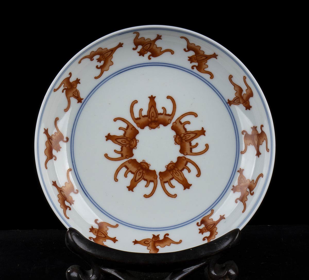 PIATTO IN PORCELLANA CON DECORO IN ROSSO DI FERRO