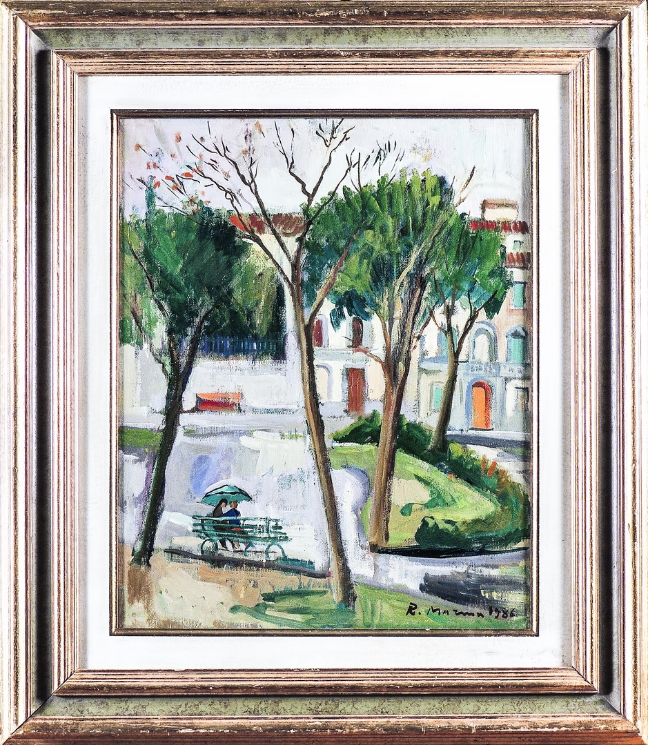 RODOLFO MARMA (1923-1999) Angolo di giardino olio su tela, firmato e datato 1986, al verso firmato, datato e titolato, in cornice cm 50x40