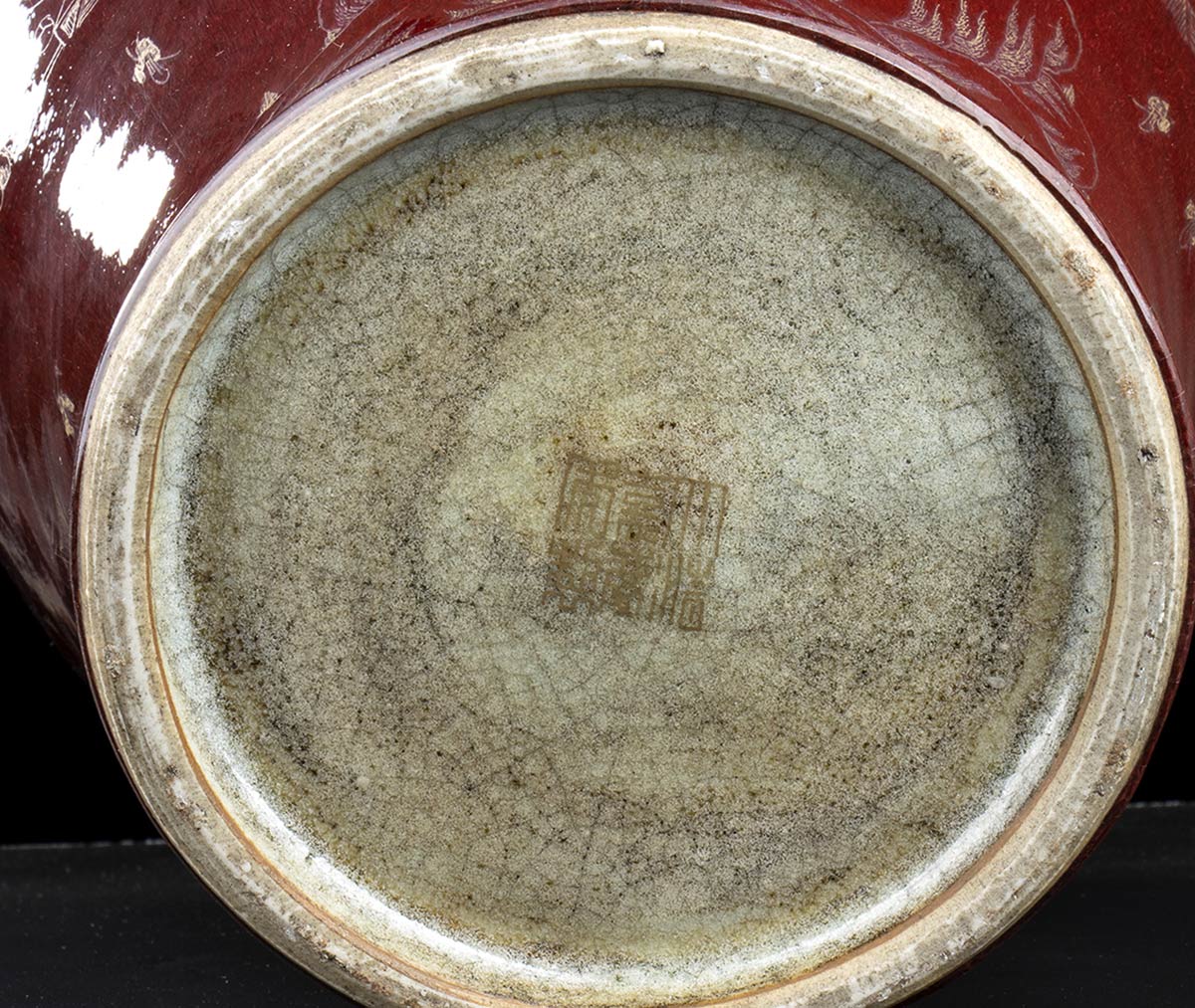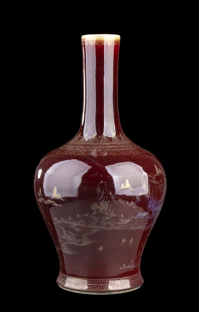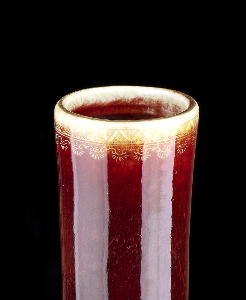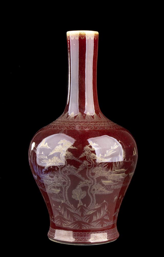 Lot 203 | VASO A BOTTIGLIA IN PORCELLANA CON INVETRIATURA ROSSA E DECORO A ORO