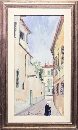 RODOLFO MARMA (1923-1999) Viuzzo delle Lame olio su tela, firmato e datato 1983, al verso firmato, datato e titolato, in cornice cm 60x30