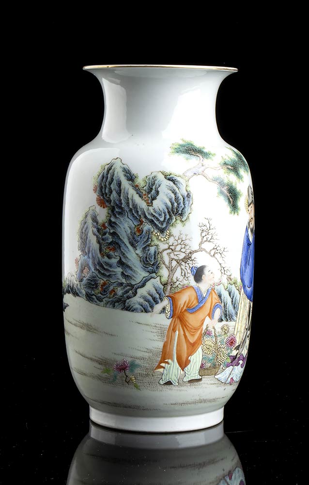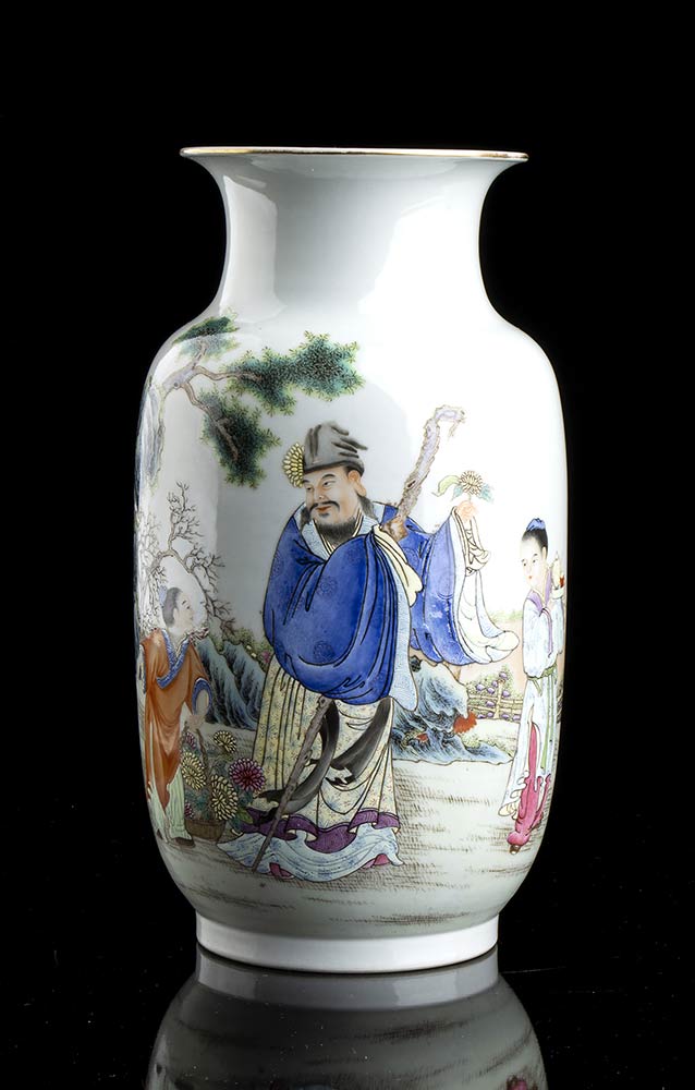 VASO IN PORCELLANA CON DECORO A SMALTI POLICROMI