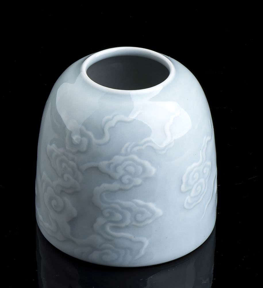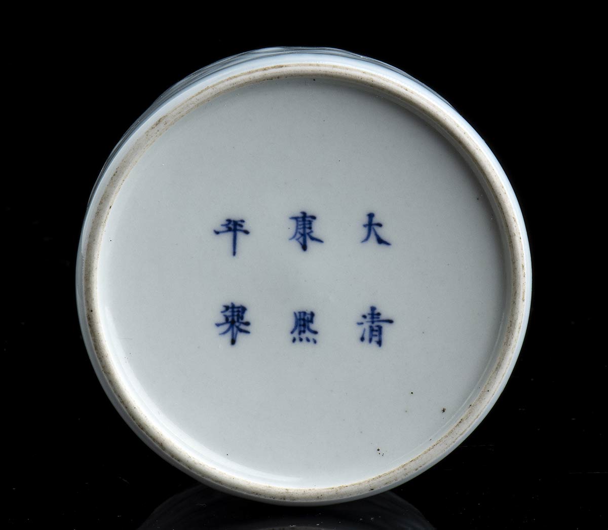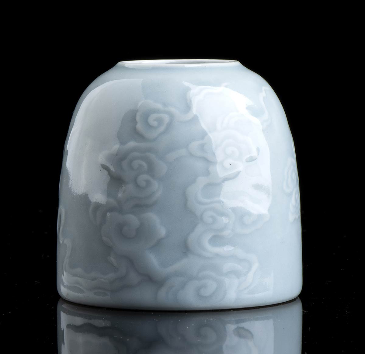 Sul corpo decoro di nuvole a rilievo, marchio apocrifo di Kangxi al centro della base.