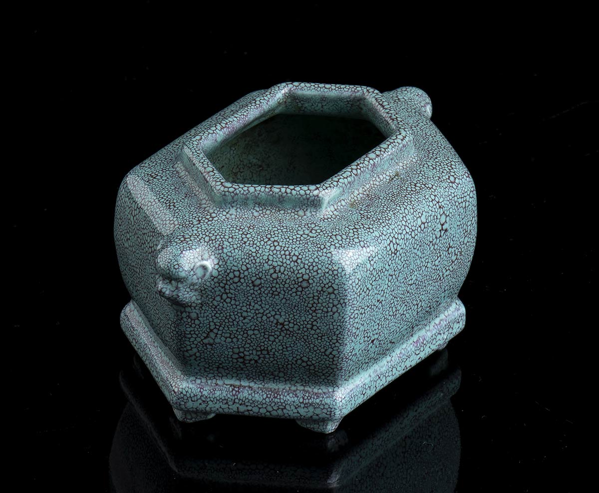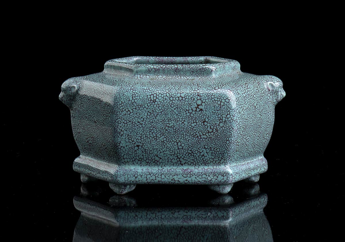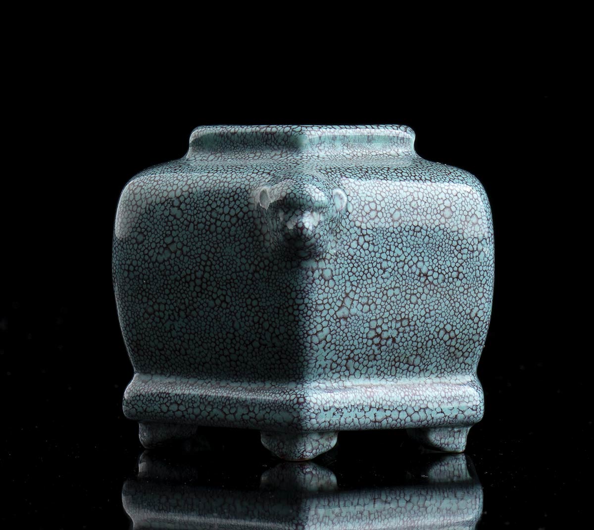 Lot 215 | PICCOLO CONTENITORE IN PORCELLANA CON INVETRIATURA ‘ROBIN’S EGG’