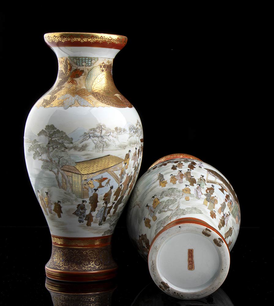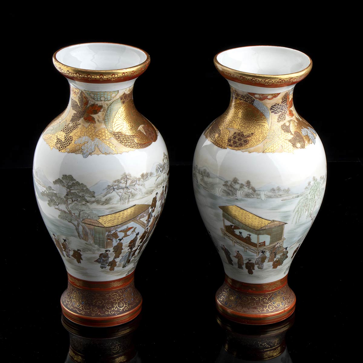 COPPIA DI VASI A BALAUSTRO IN PORCELLANA ‘KUTANI’ CON DECORO A SMALTI POLICROMI E ORO
