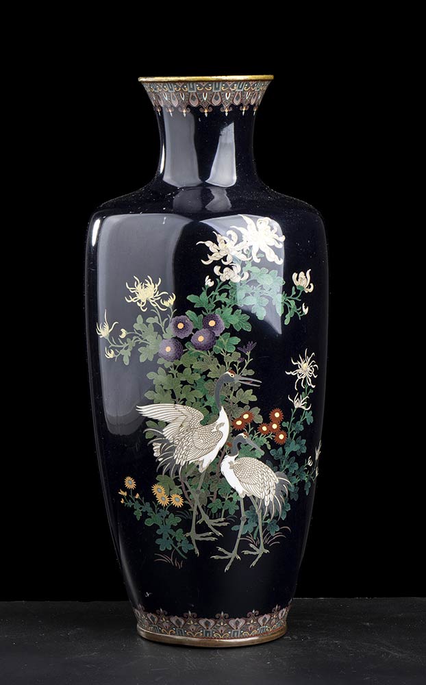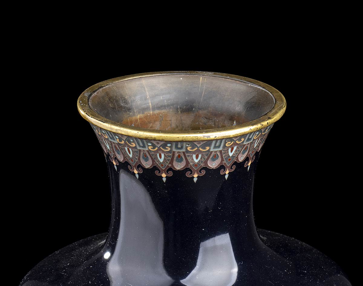 VASO IN METALLO CON DECORO A SMALTI POLICROMI CLOISONNÉ