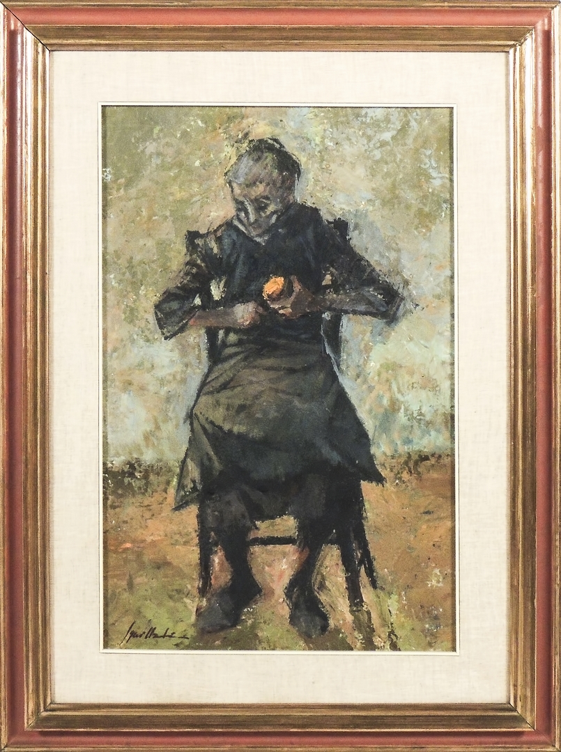 REMO SQUILLANTINI (1920-1996) Anziana seduta olio su cartone, firmato, in cornice, cm 50x32