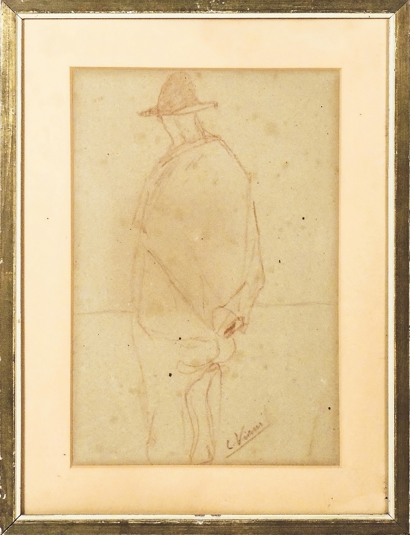 LORENZO VIANI (1882-1936) Personaggio maschile sanguigna su carta, firmato, al verso firmato, in cornice cm 37x25 Al verso reca iscrizione e firma di Amelio Vivaldi