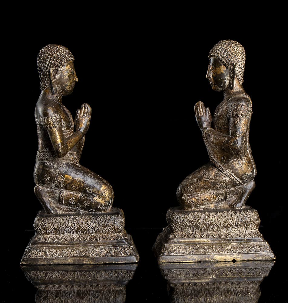 COPPIA DI OFFERENTI IN BRONZO CON TRACCE DI DORATURA