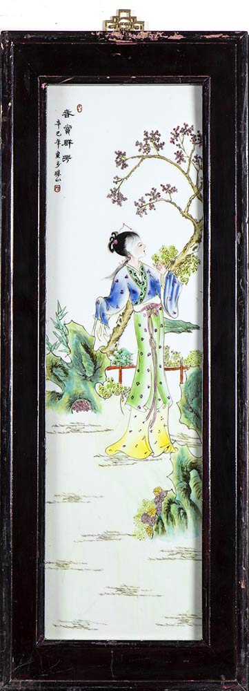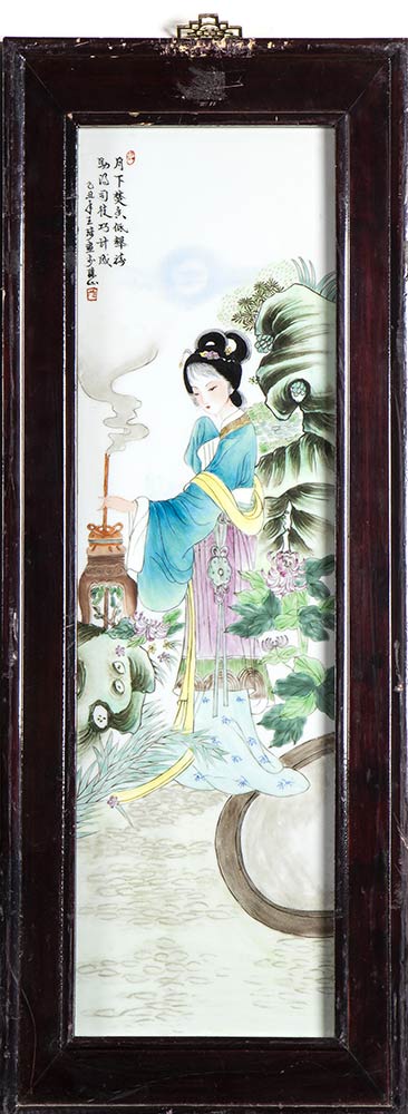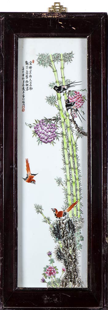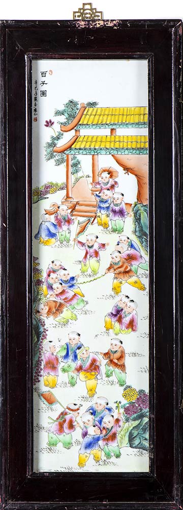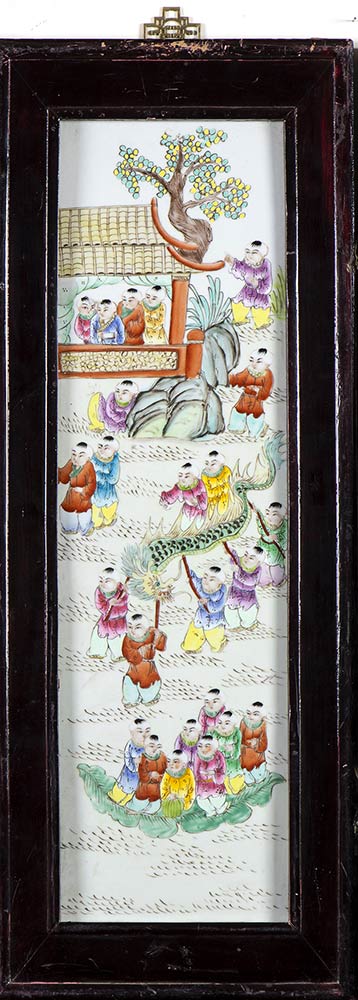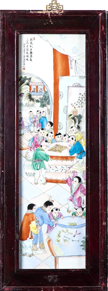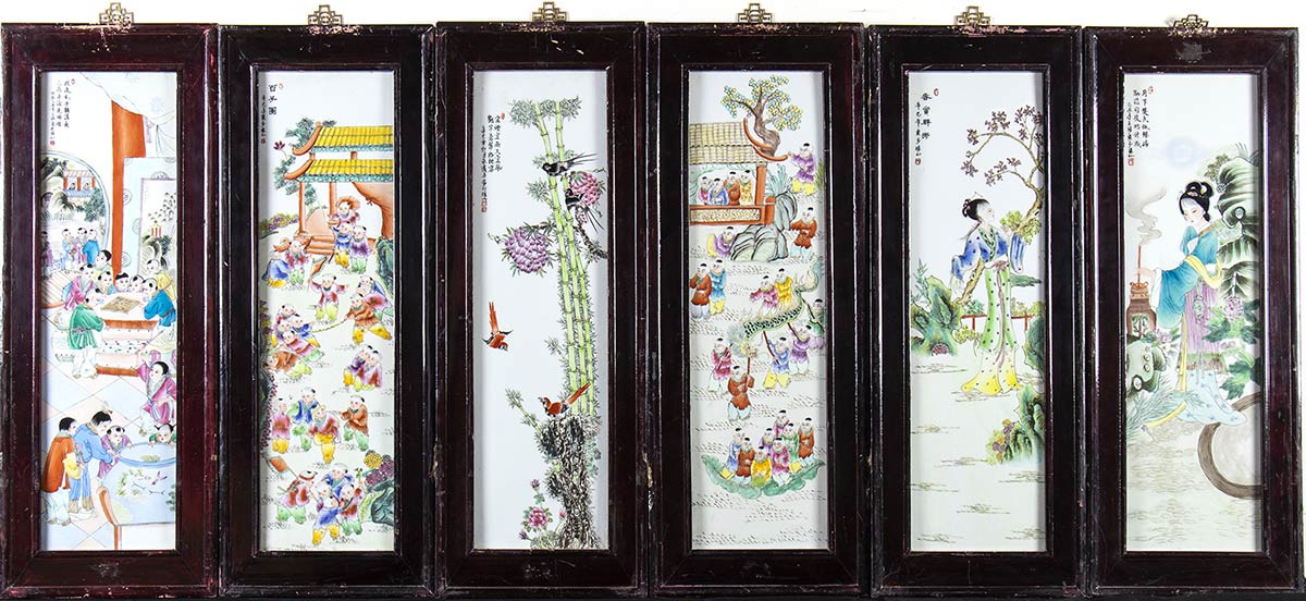 Lot 348 | SEI PANNELLI IN PORCELLANA CON DECORO A SMALTI POLICROMI E CORNICE IN LEGNO