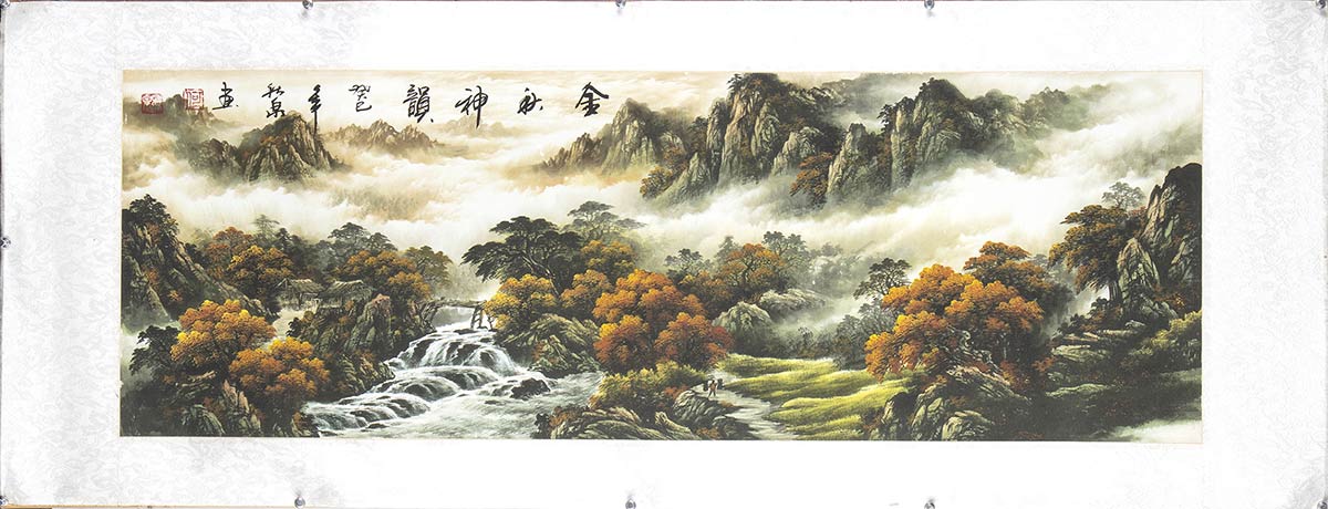 Lot 370 | DIPINTO A INCHIOSTRO E COLORI SU CARTA CON UN PAESAGGIO