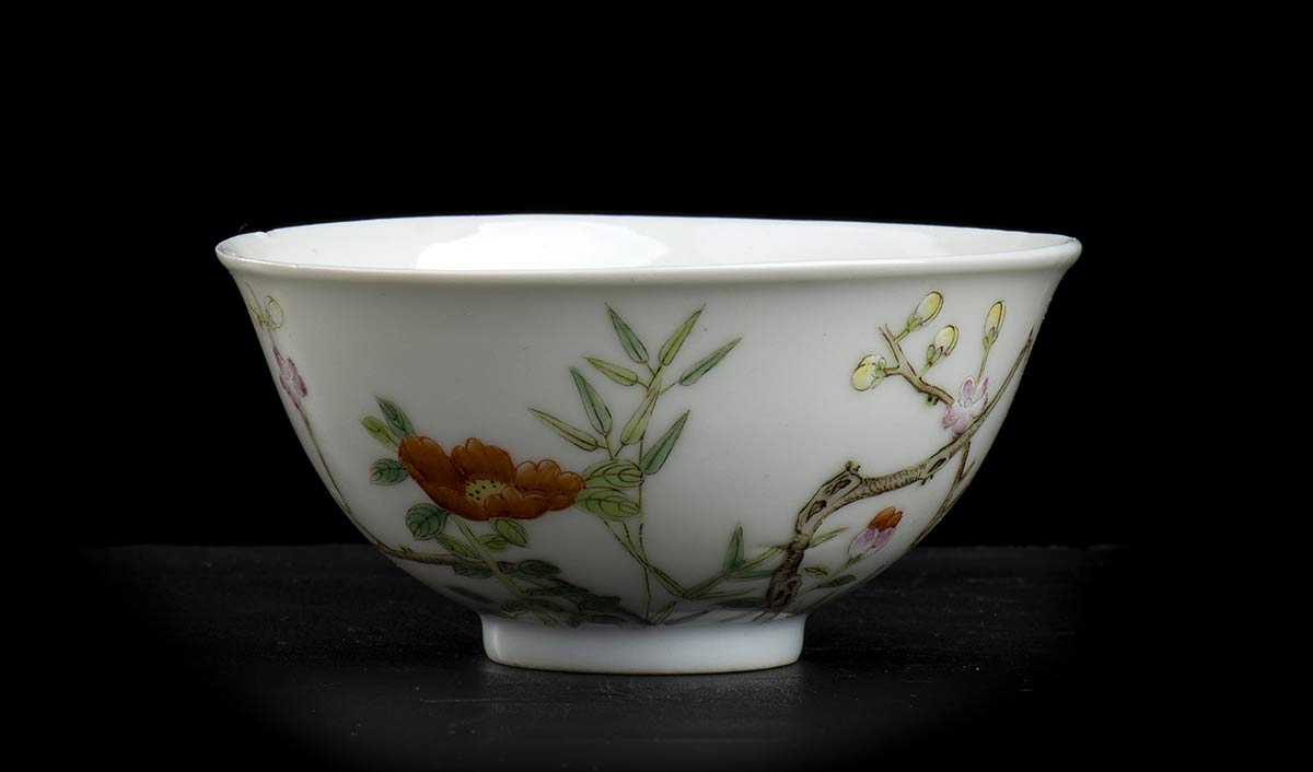 PICCOLA CIOTOLA IN PORCELLANA CON DECORO A SMALTI POLICROMI