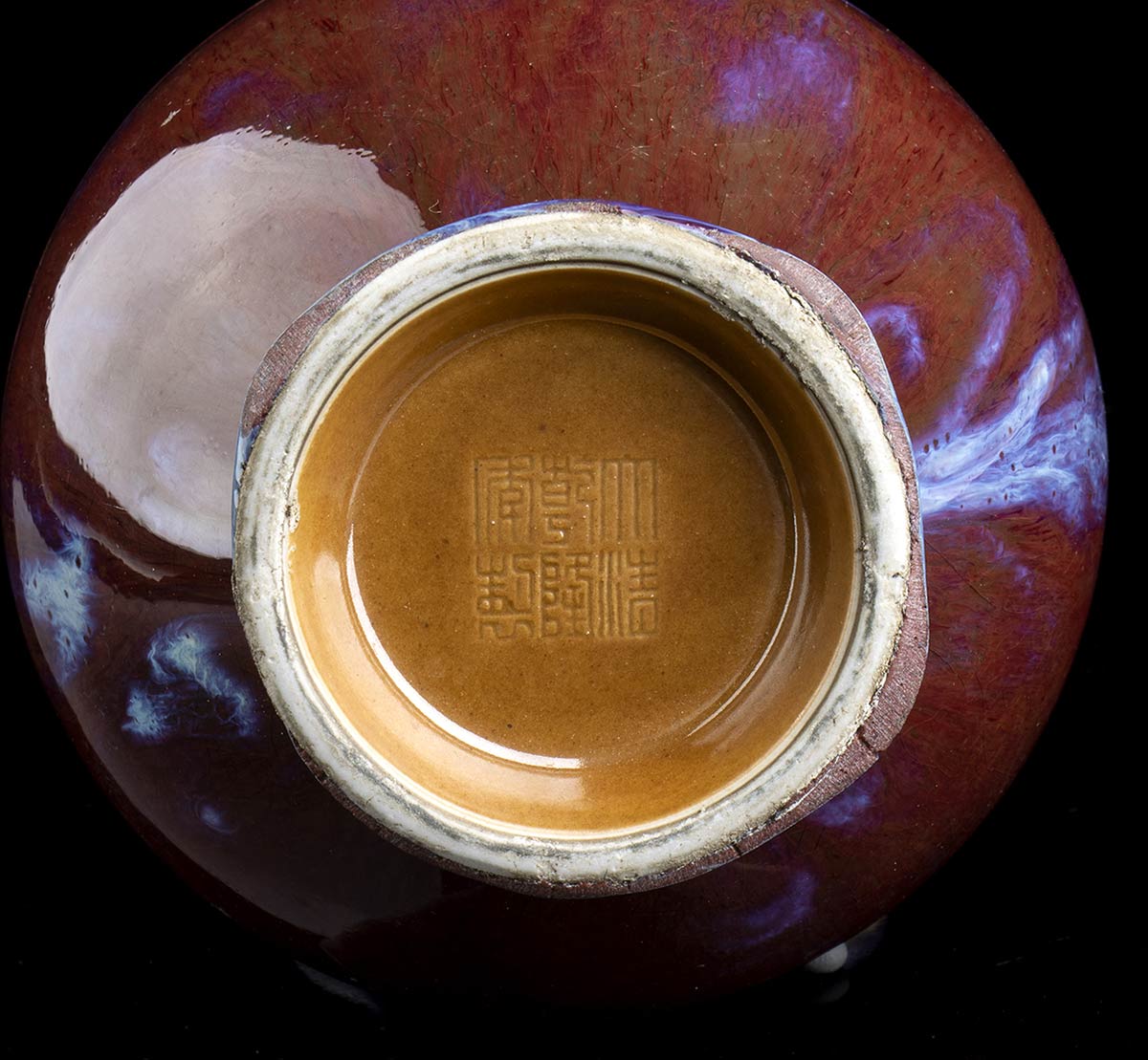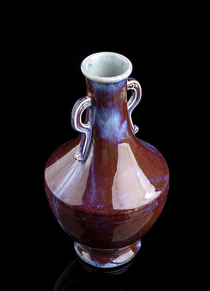 VASO A BOTTIGLIA IN PORCELLANA CON INVETRIATURA FLAMBÉ