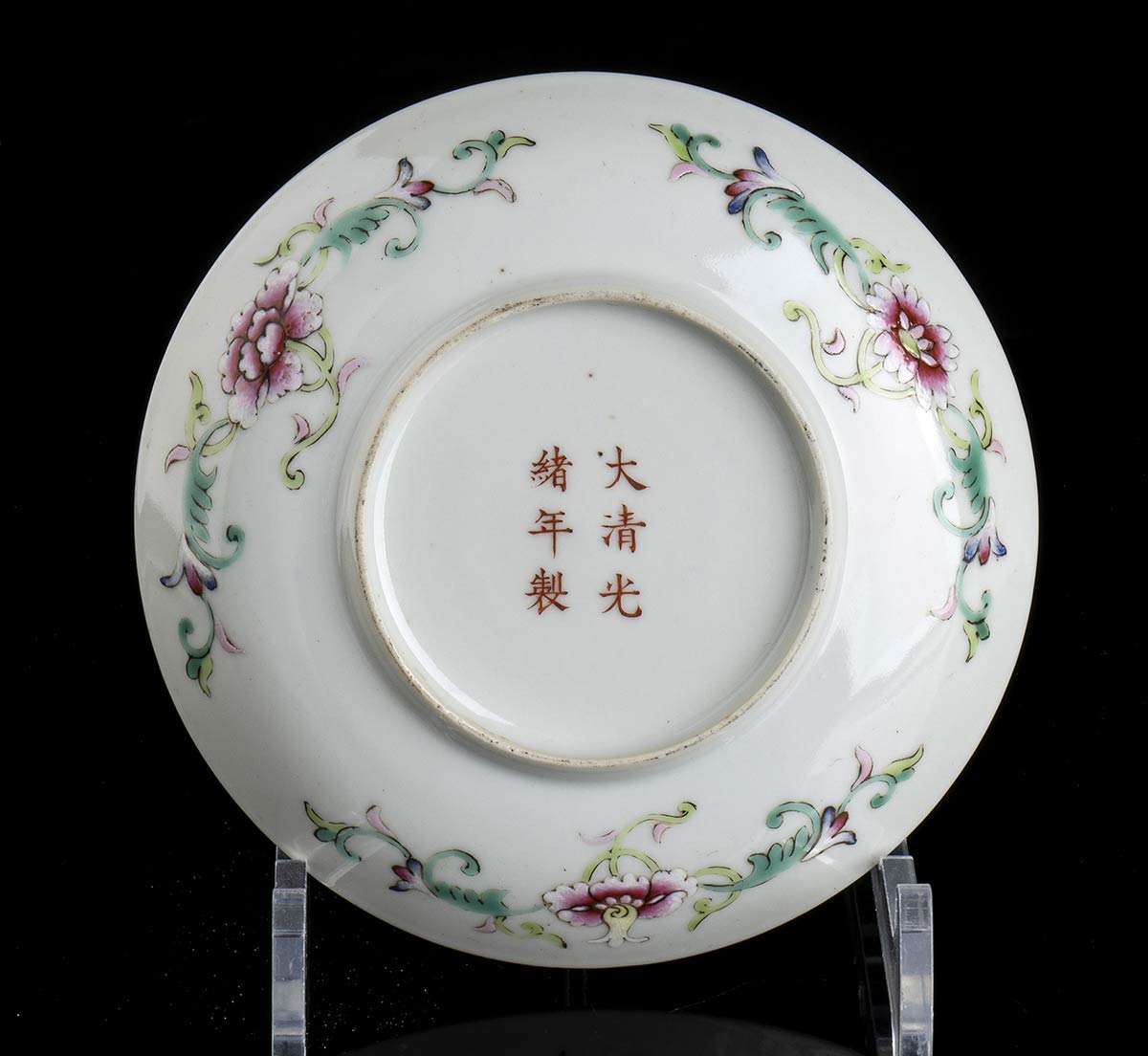 PIATTINO IN PORCELLANA CON DECORO A SMALTI POLICROMI E ORO