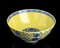 GRANDE CIOTOLA IN PORCELLANA CON DECORO A SMALTI BLU E GIALLO