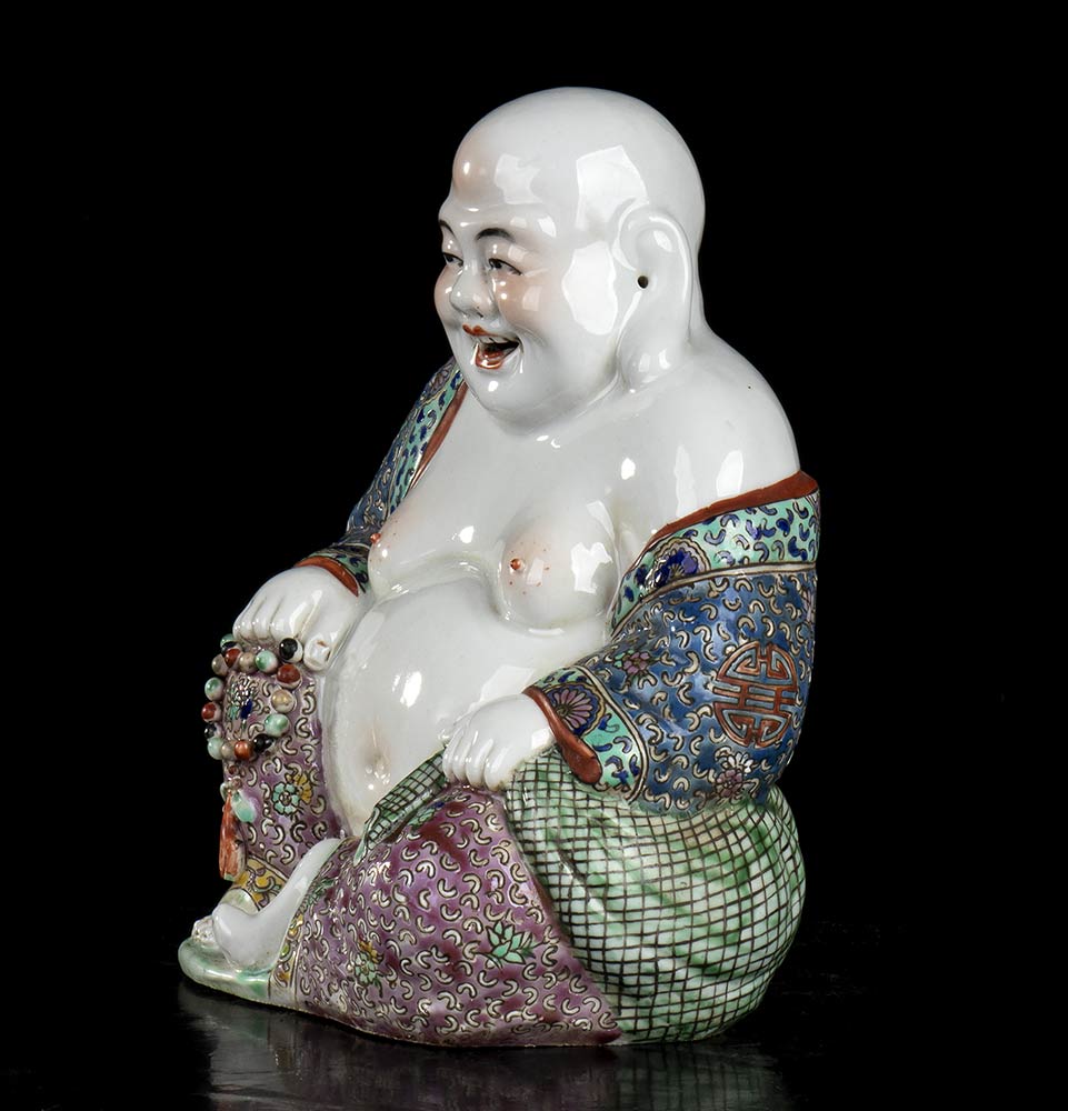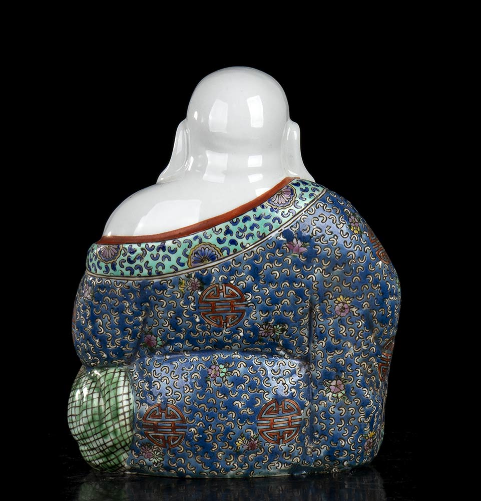 BUDAI IN PORCELLANA CON DECORO POLICROMO