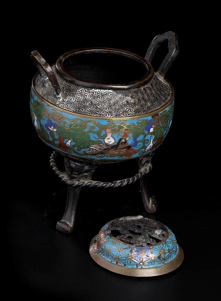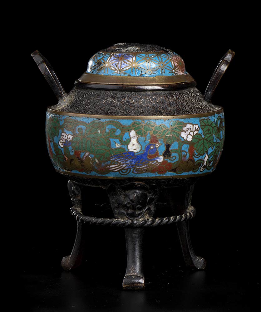 INCENSIERE TRIPODE IN METALLO CON SMALTI CLOISONNÉ
