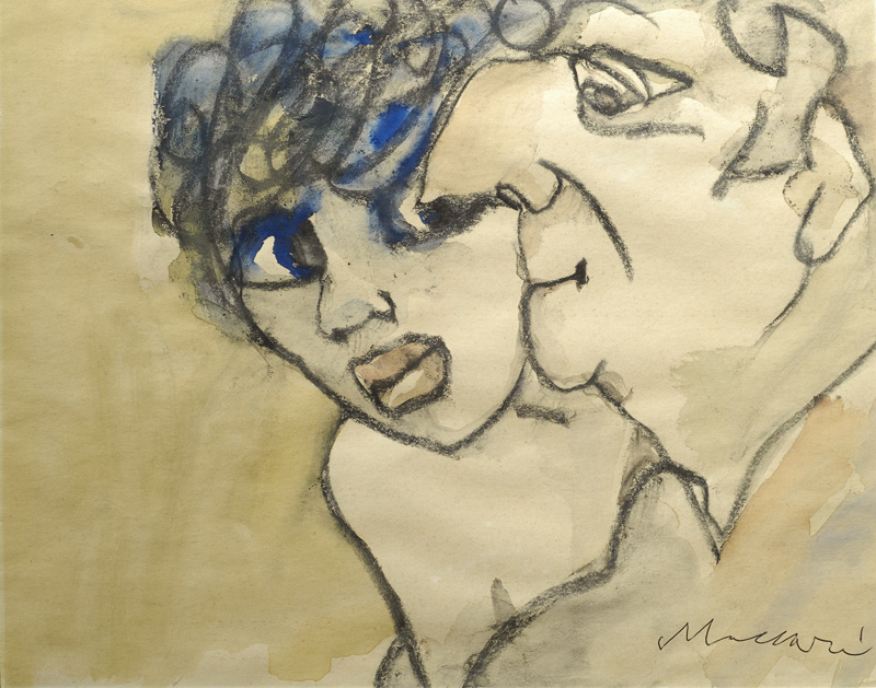 Mino Maccari (Siena, 1898 - Roma, 1989) VOLTI Tecnica mista su carta, cm. 24x30 Firma in basso a destra.