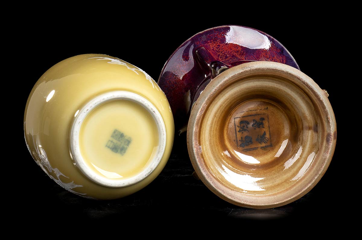 GRUPPO DI SEI OGGETTI IN CERAMICA E PORCELLANA
