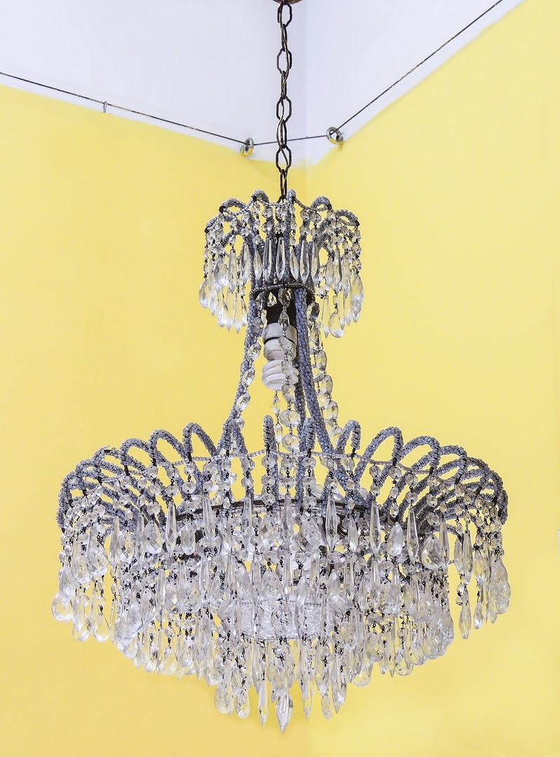 LAMPADARIO CIRCOLARE IN VETRO INCOLORE con gocce pendenti degradè h cm 75