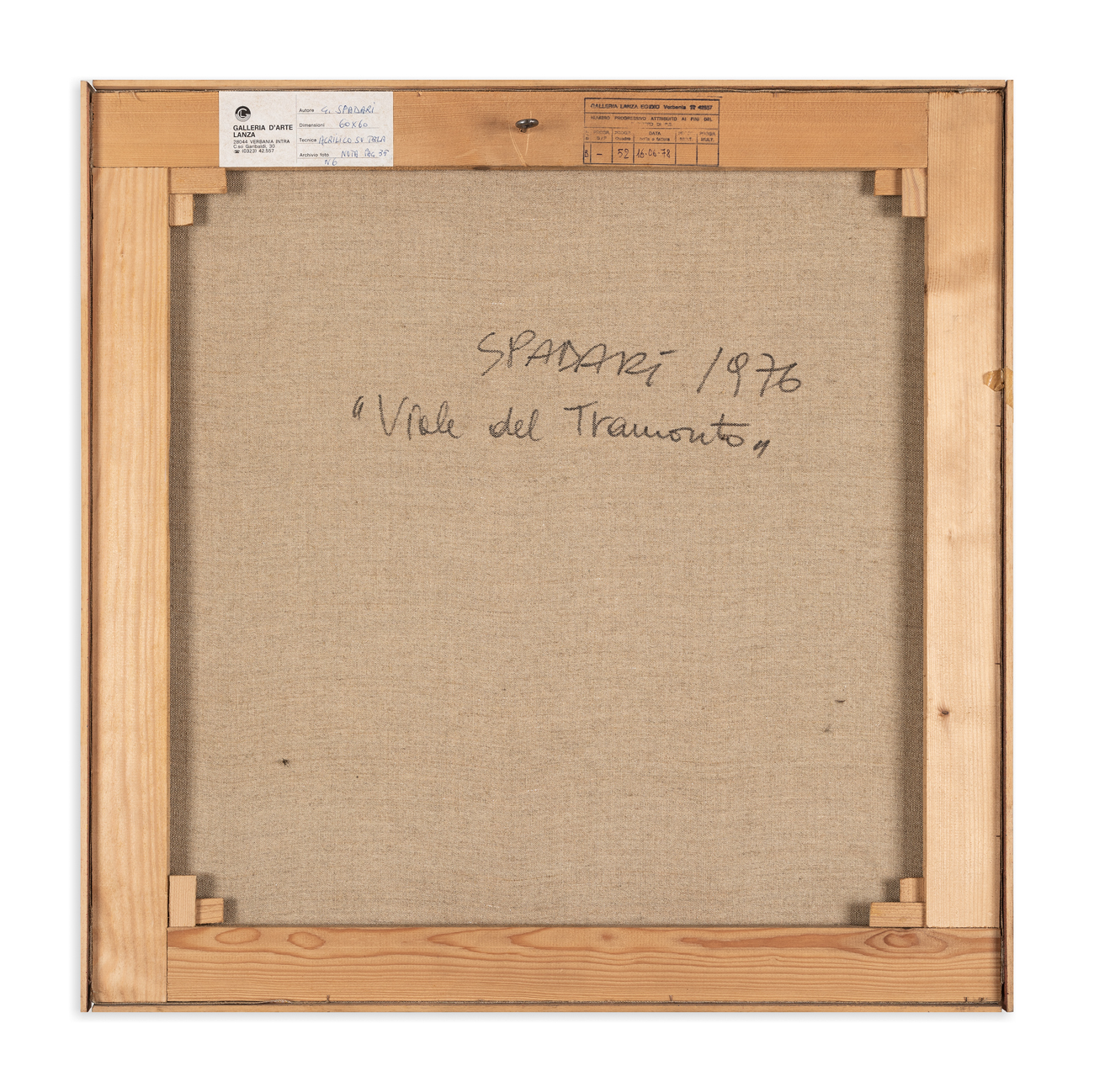 Etichetta e timbro della Galleria d'Arte Lanza (VB) al retro