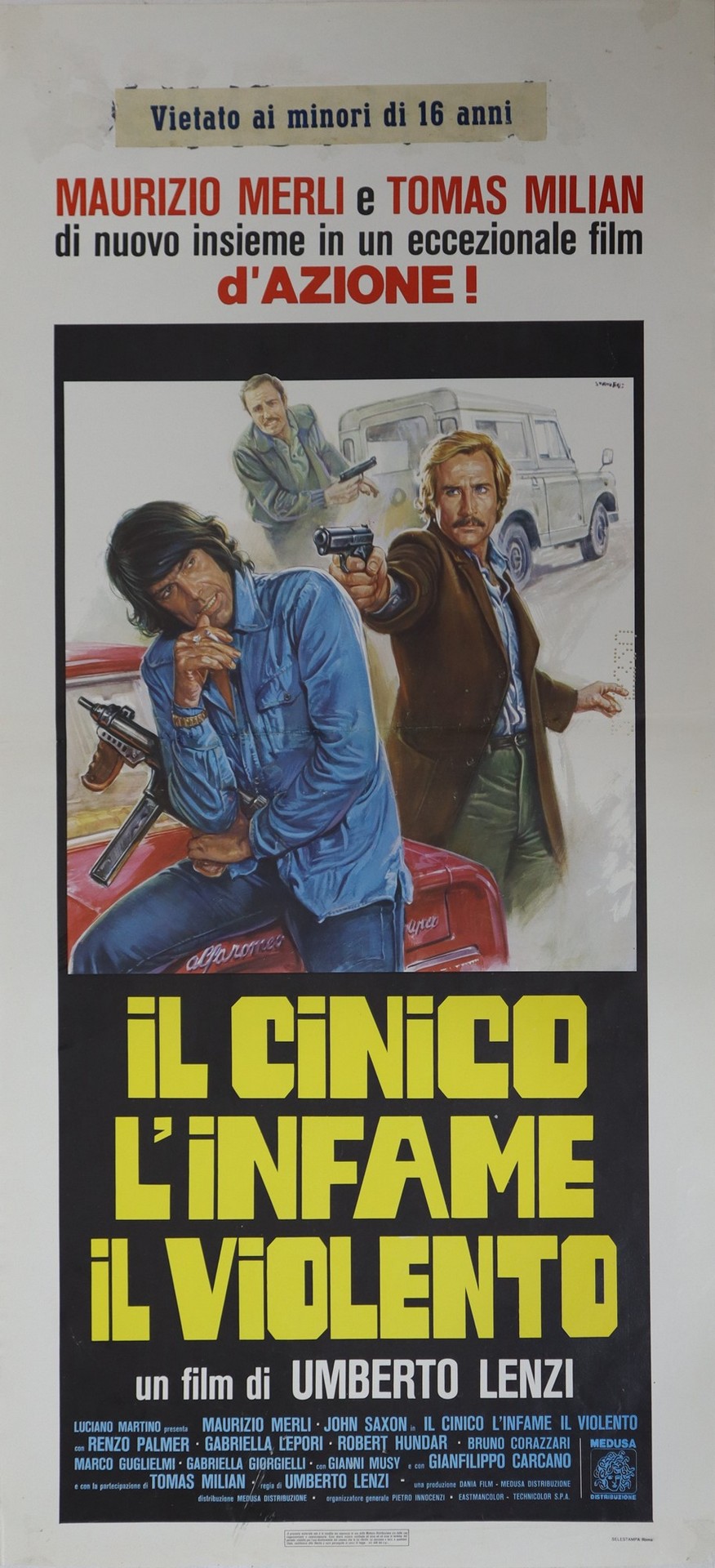 Locandina cinema ''Il cinico, l'infame e il violento'' cm 70 x cm 33 Roma, normali segni d'uso