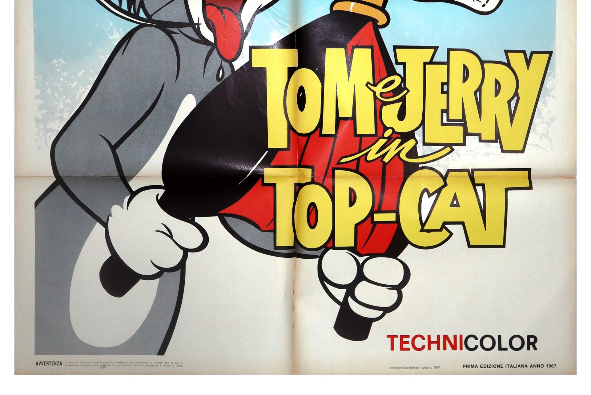 Manifesto cinema due fogli ''Tom e Jerry top cat'', 1967 cm 140x100 Prima edizione Italiana, Zincografica - Firenze, normali segni d'uso, presente nastro