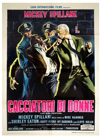 Manifesto cinema due fogli ''Cacciatori di donne'', 1963 cm 140x100 Vecchioni e Guadagno, normali segni d'uso