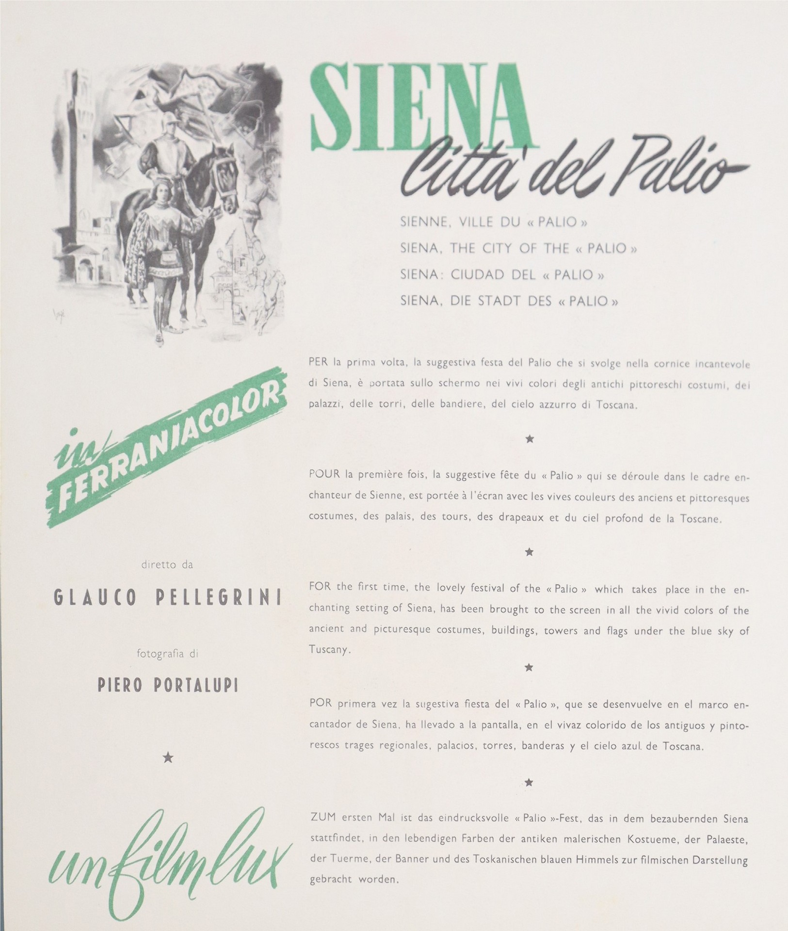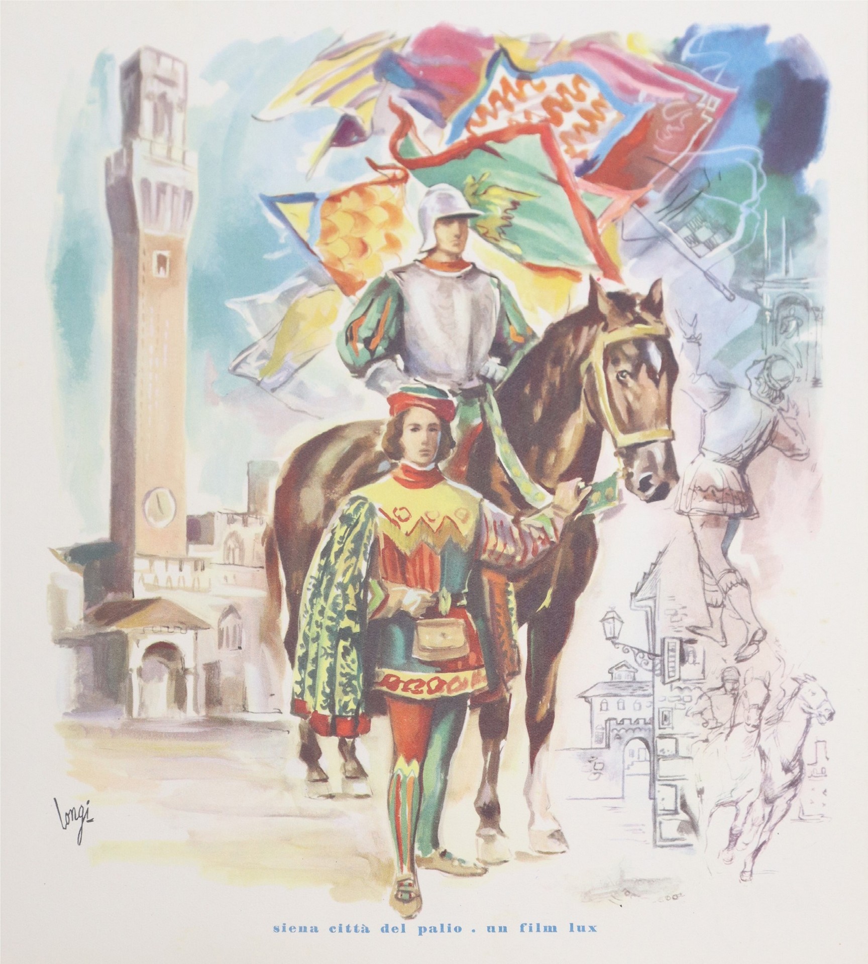 Carlo Antonio Longi - Locandina disegnata Siena Città del palio, 50s cm 27 x cm 24 Prima Edizione ItalianaPrima Edizione Italiana