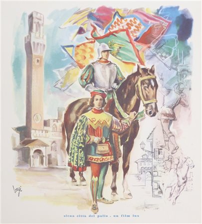 Carlo Antonio Longi - Locandina disegnata Siena Città del palio, 50s