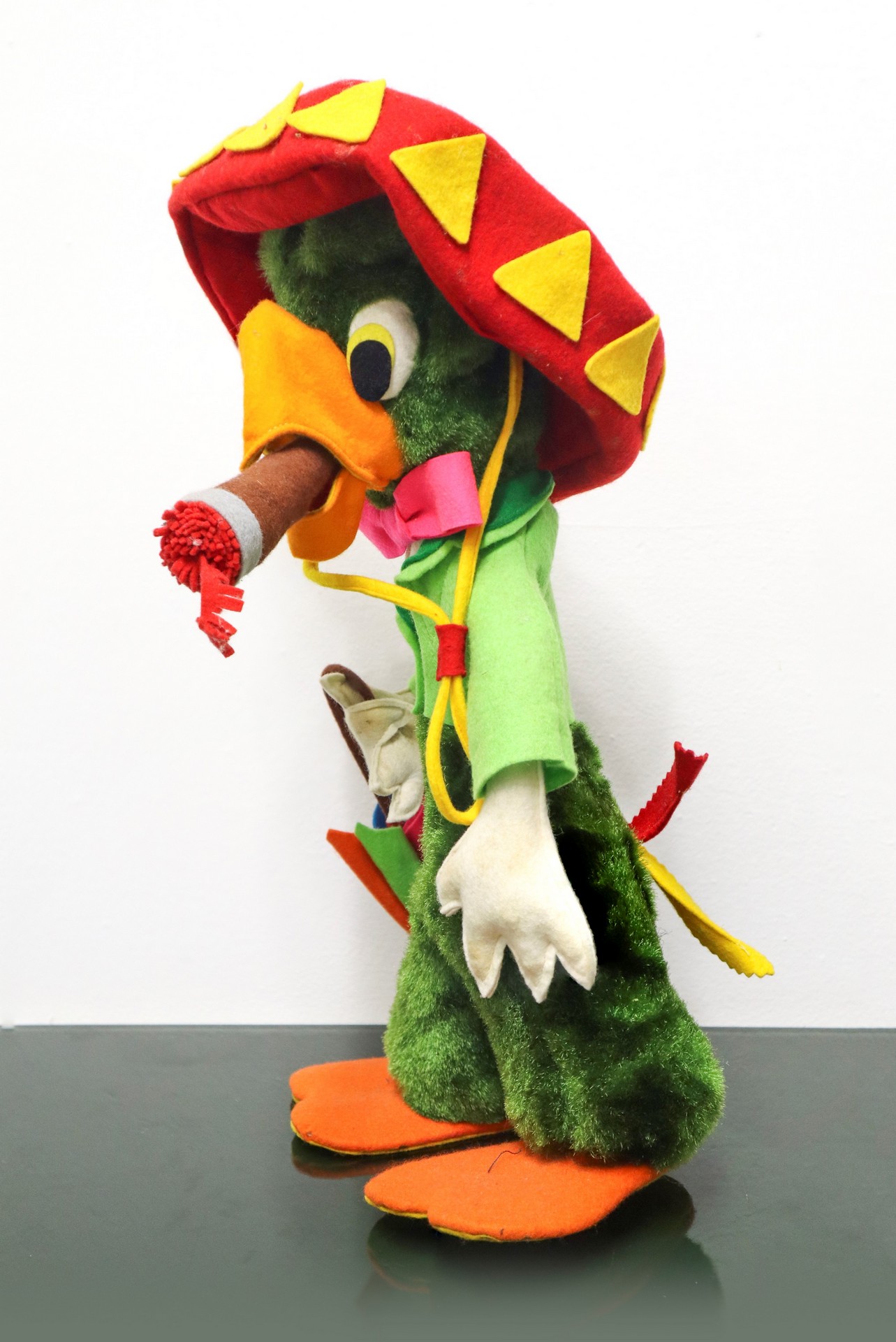 Josè Carioca in pannolenci, 1952 h cm 41 Dal lungometraggio animato "I Tres Caballeros", Walt Disney, presenti normali segni d'usoDal lungometraggio animato "I Tres Caballeros", Walt Disney, presenti normali segni d'uso