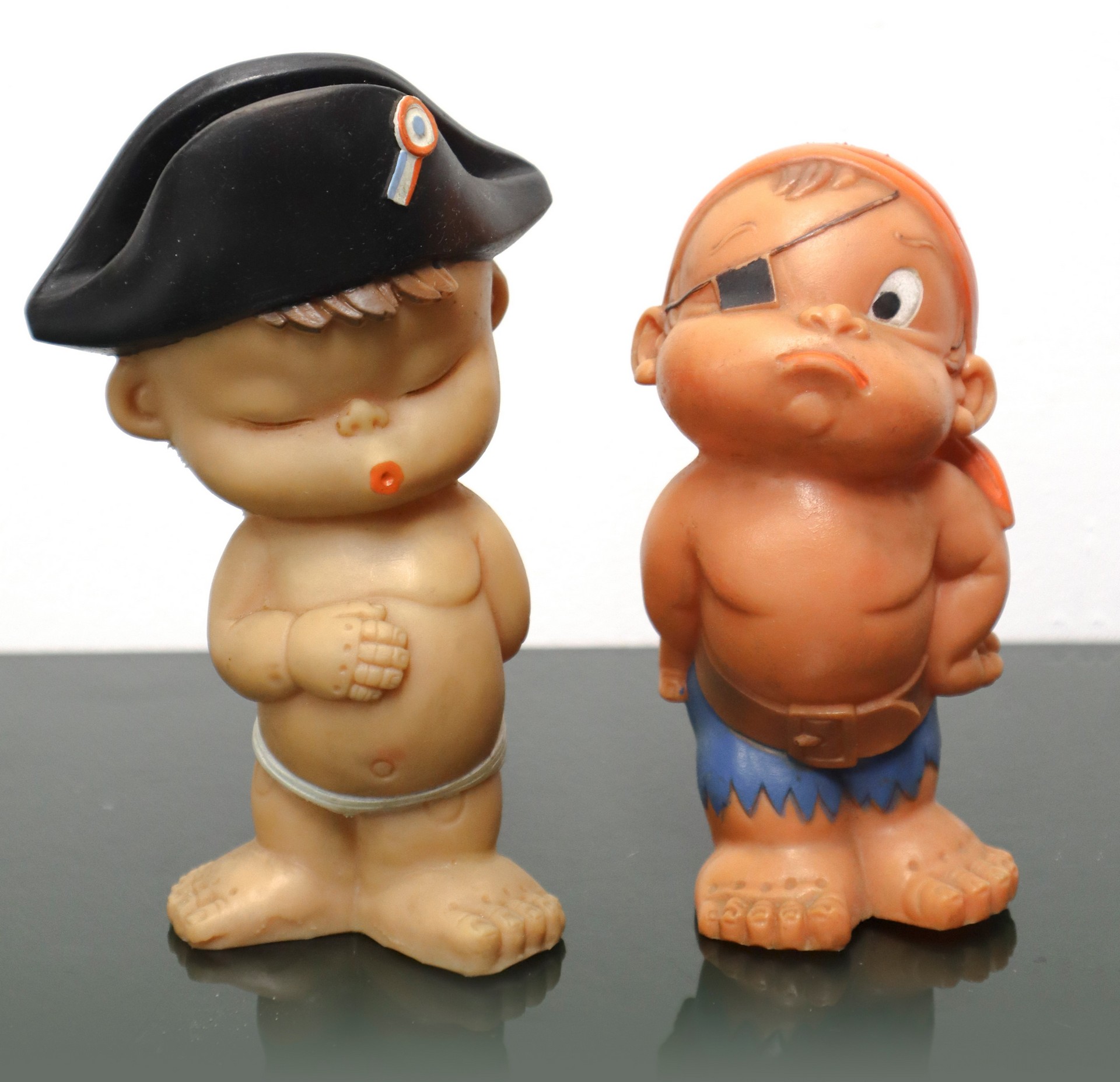 Laflex - Petit Pirate e Napoleone, 1967 H cm 20 Coppia di pupazzi in gomma con sognaglio Made in France.Coppia di pupazzi in gomma con sognaglio Made in France.