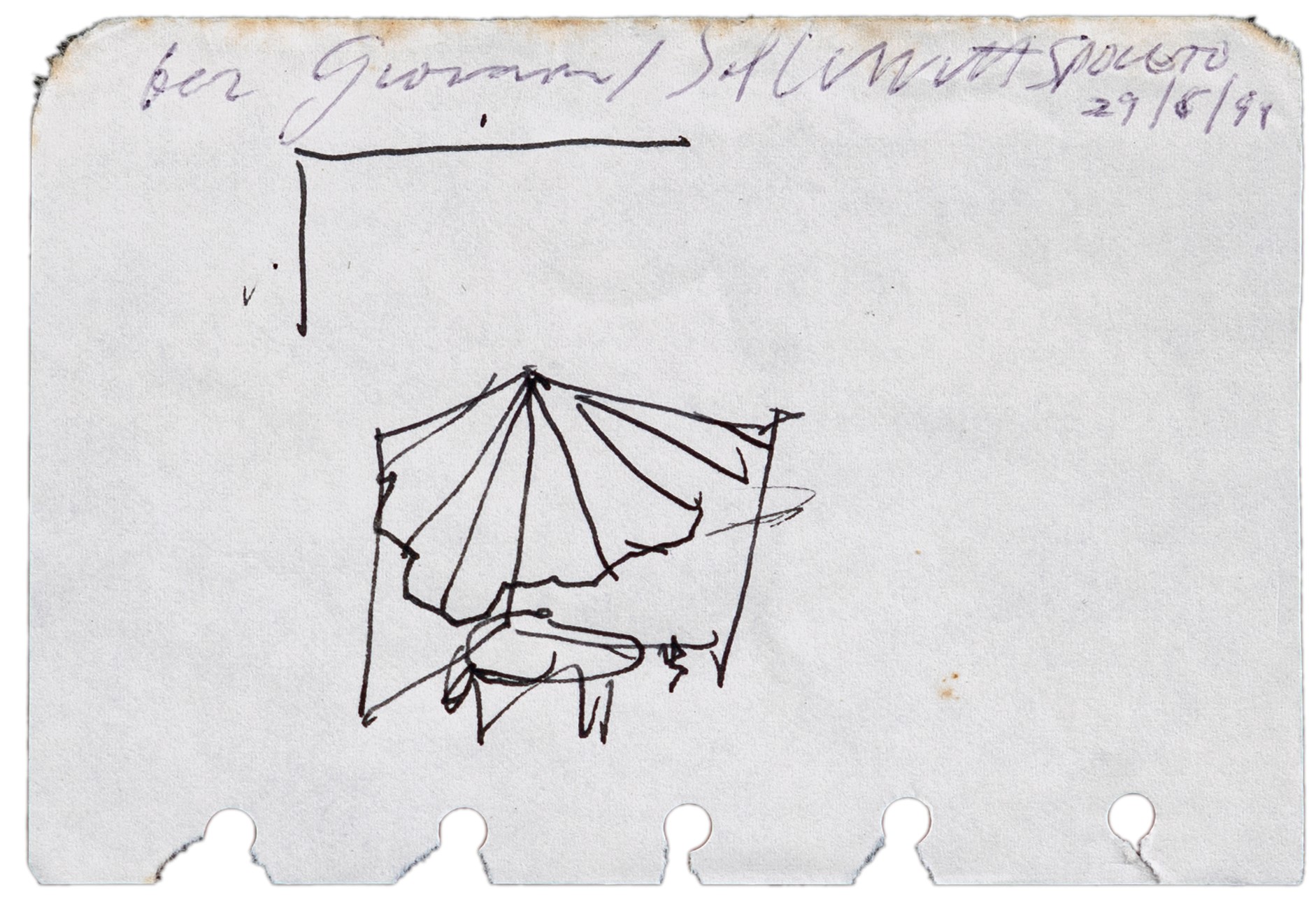 Firma, dedica e data in alto "Per Giovanni Sol Lewitt Spoleto 29.8.91".