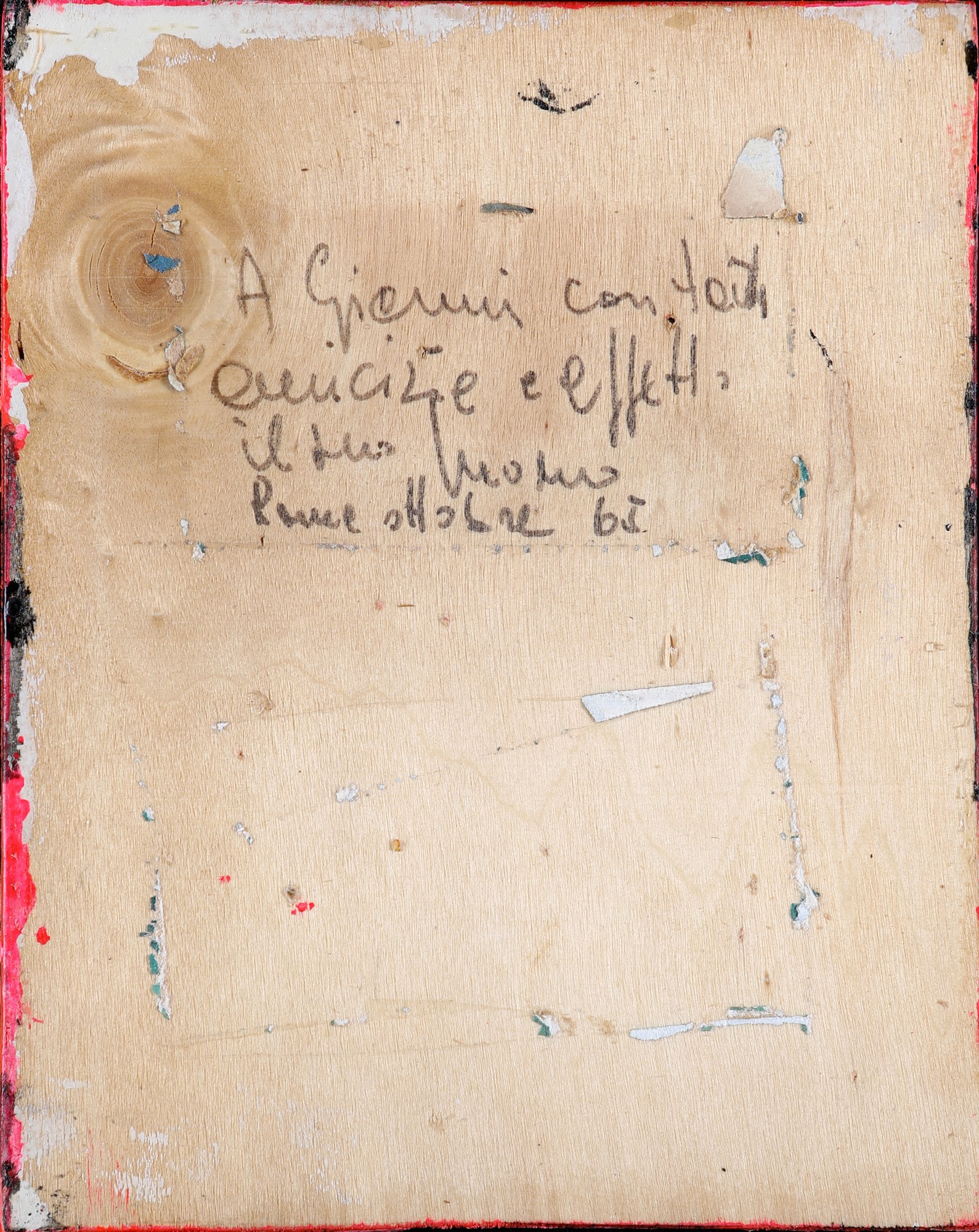 Al verso reca "A Gianni con tata amicizia e affetto il suo Mario, Roma ottobre '65". Misure in cornice cm 27,5x24,5.