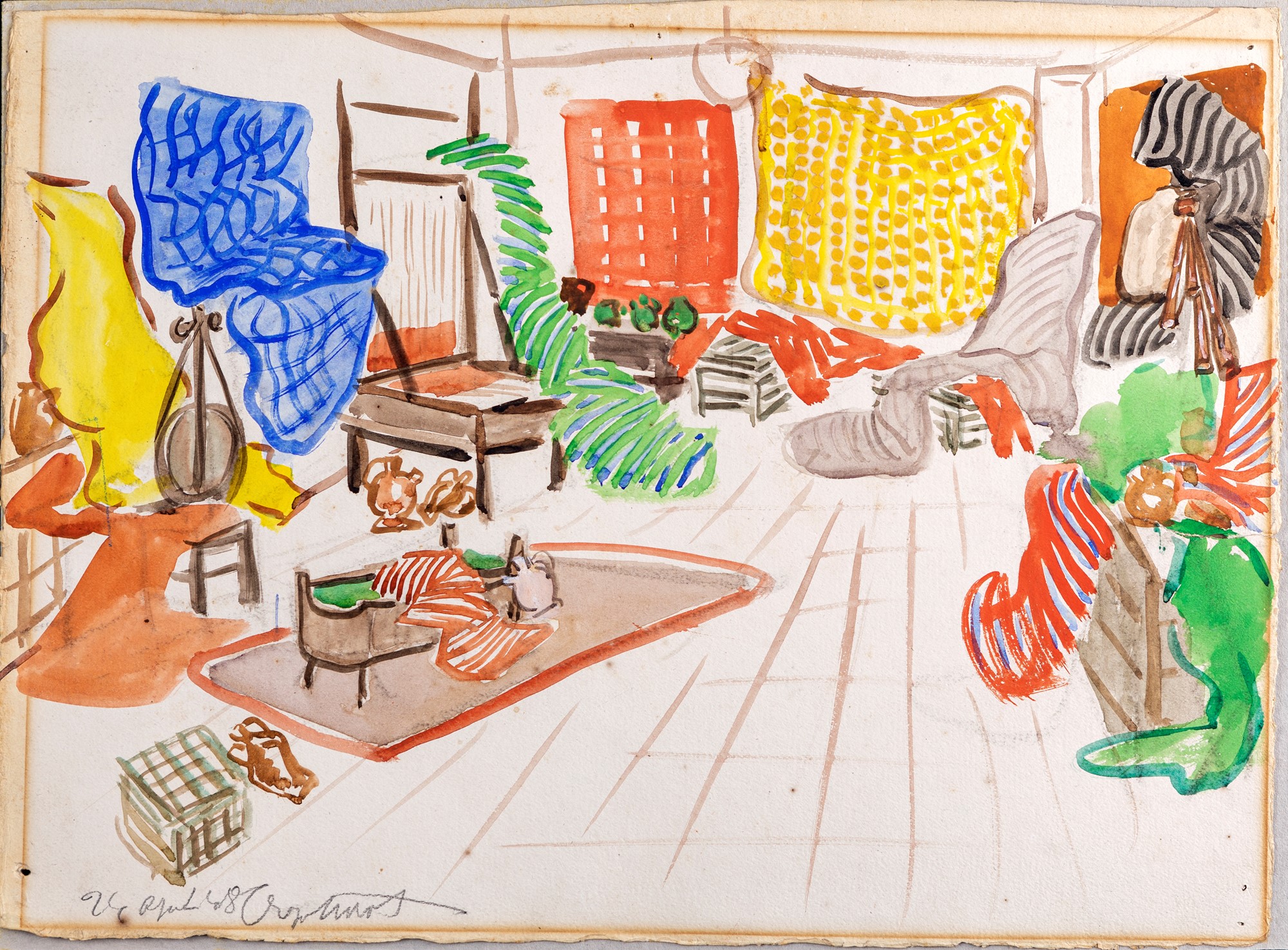 Anonimo del XX secolo ( - ) Interno 1948 Tempera e acquarello su carta cm...