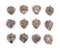Lotto di 12 ciondoli in argento e legno raffiguranti i segni zodiacali, realizzati da Renato Guttuso. Ogni ciondolo misura 5,5x5 cm circa ed è firmato "Guttuso" e numerato 205/995