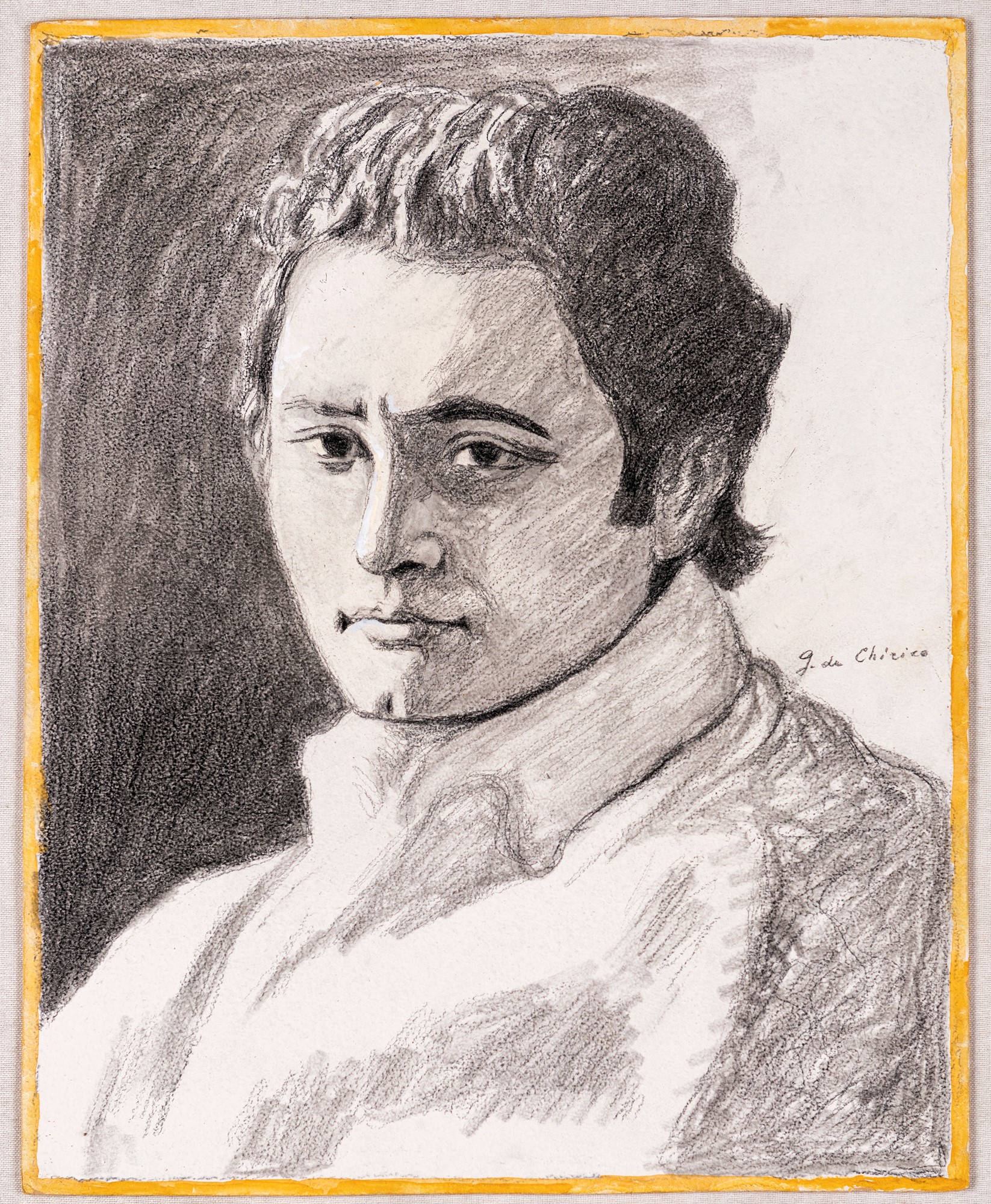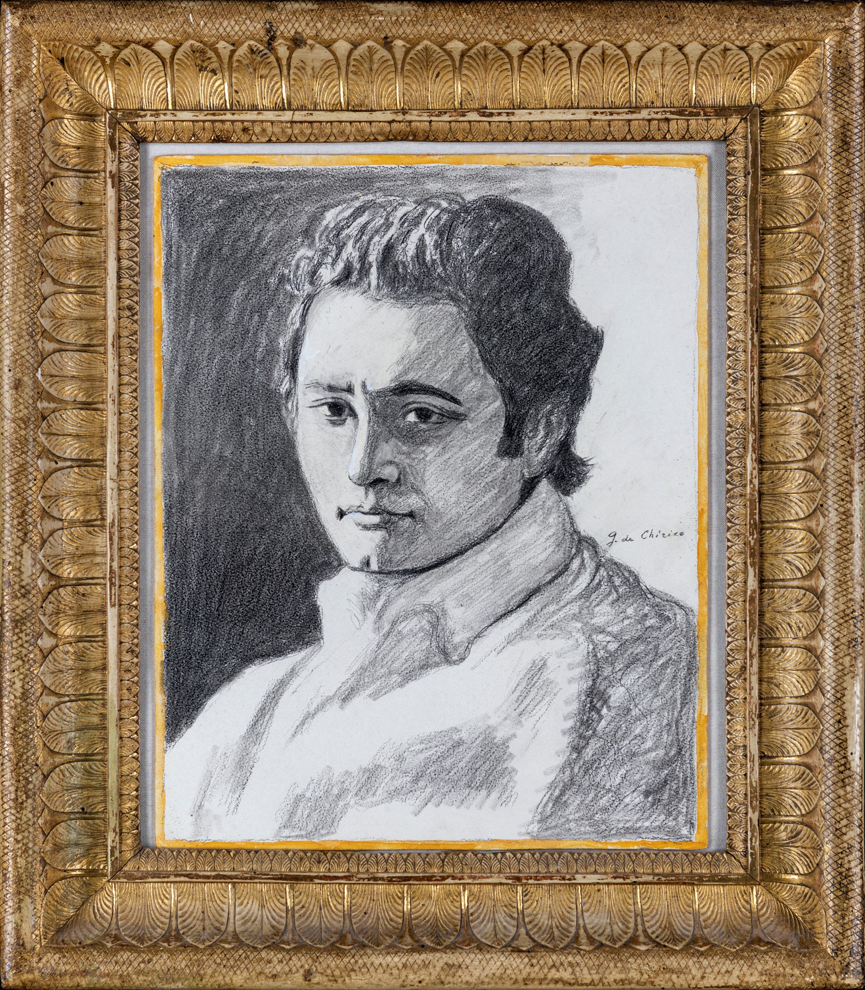 Ritratto di Claudio Bruni Sakraishick. Firma sul fronte "G.De Chirico". Misure in cornice cm 70x62. Etichetta della Galleria La Medusa, Roma