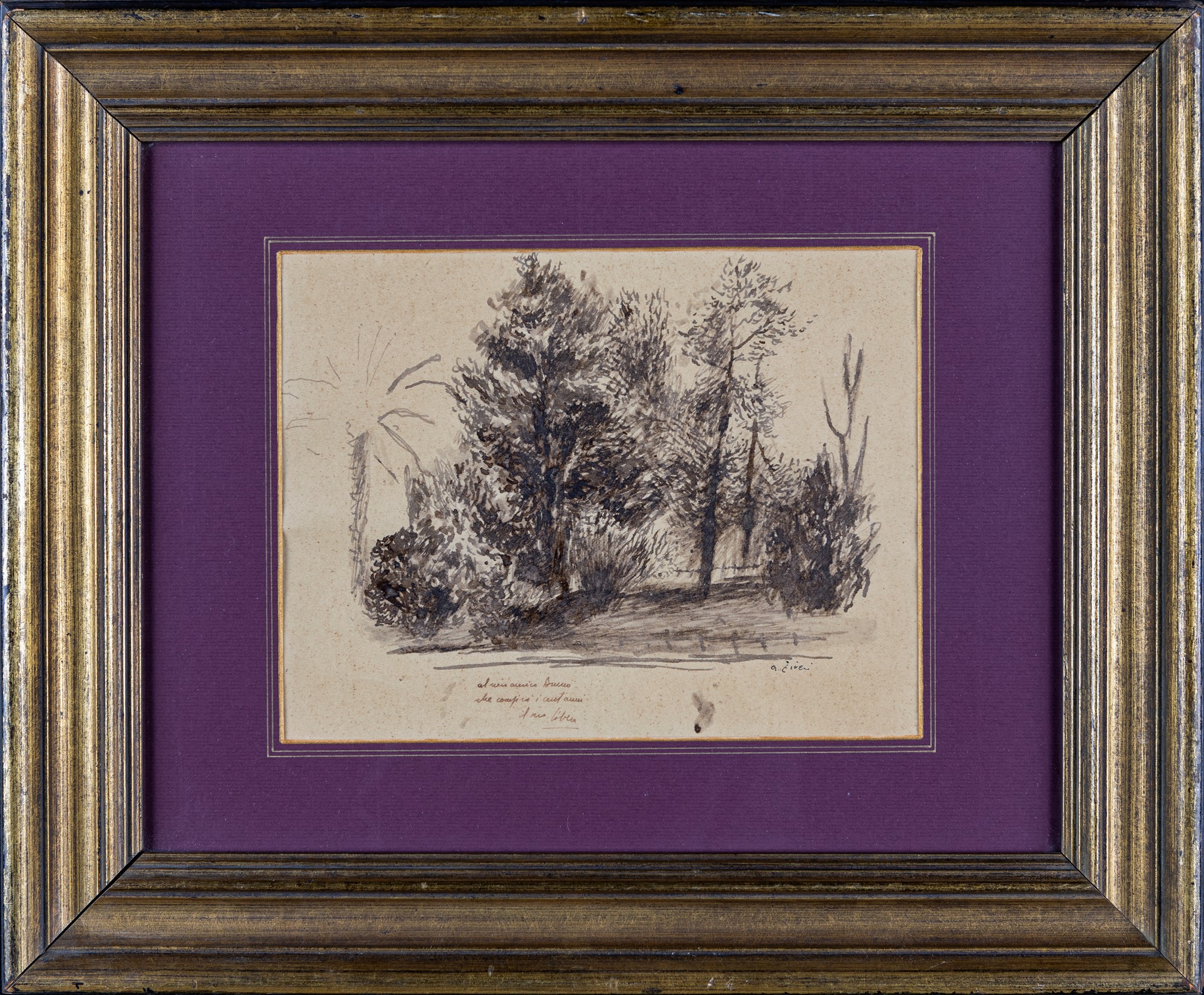 Firma e dedica sul fronte "Al mio amico Bruno / che compirà i 100 anni / il suo Ziveri / A. Ziveri". Misure in cornice cm 42x50