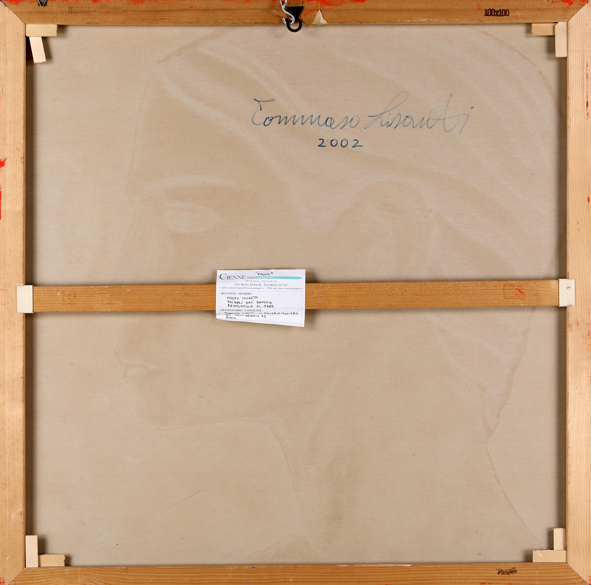 Al verso reca firma e data "Tommaso Lisanti 2002". Timbro dell'Associazione Culturale Maniero, Roma.