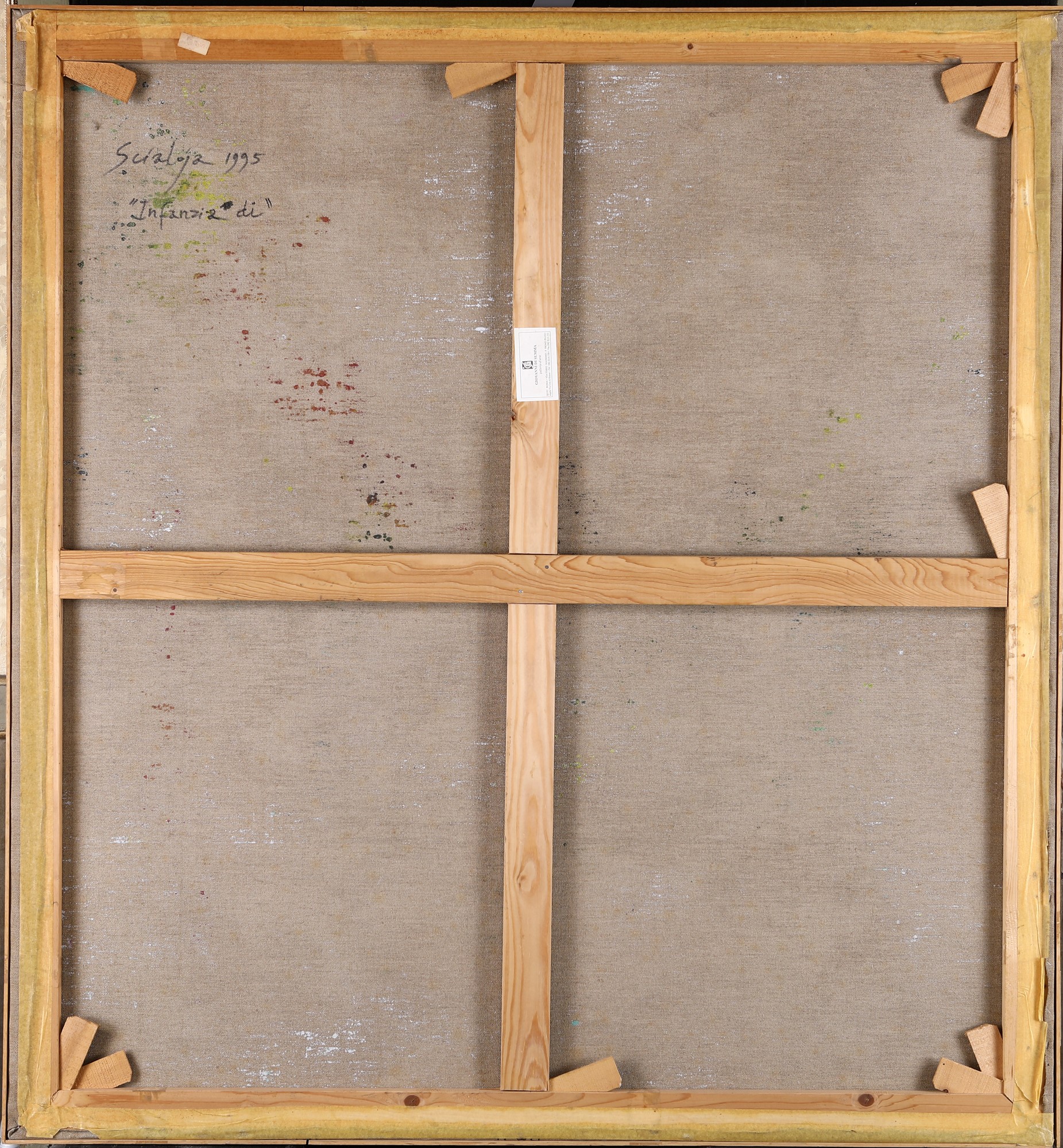Firma, data e titolo al verso "Scialoja 1995 Infanzia di". Etichetta della Galleria Giovanni Di Summa
