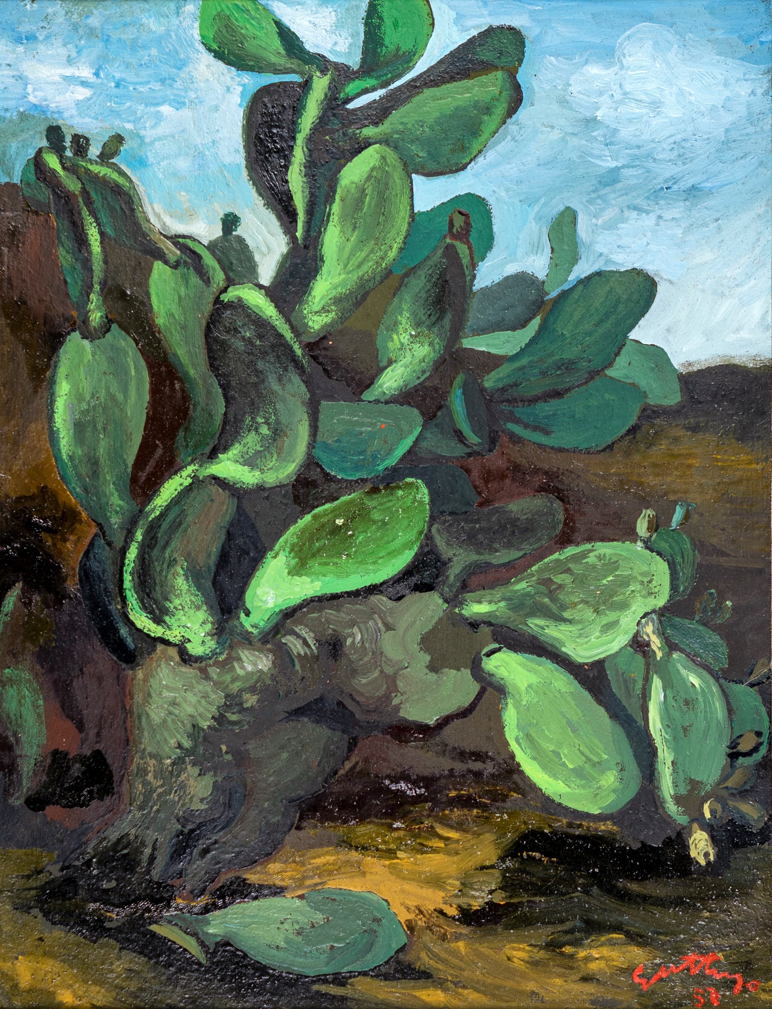 Renato Guttuso (Bagheria, 1911 - Roma, 1987) Cactus 1952 Olio su cartone cm...