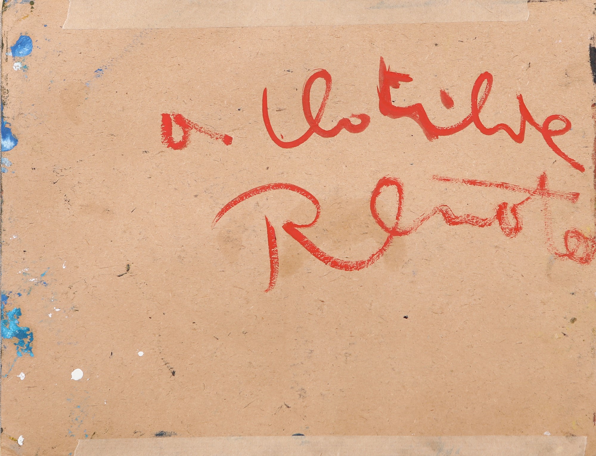 Firma e data in basso a destra "Guttuso '52". Al verso reca dedica "A Clotilde, Renato". Misure in cornice cm 50x42. Appartiene al ciclo di dipinti di Torre del Greco.
