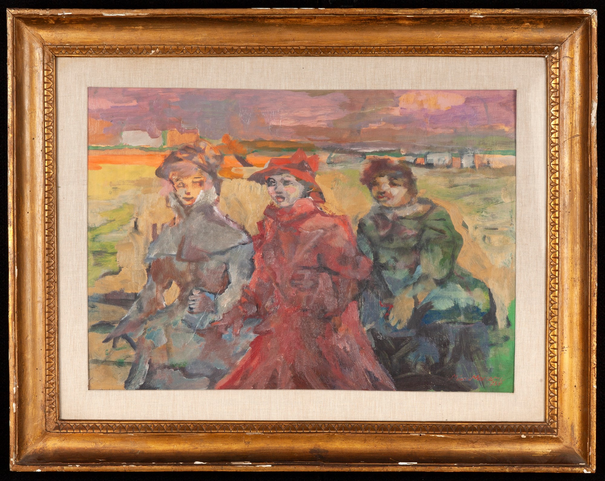 Mino Maccari (Siena, 1898 - Roma, 1989) Figure nel paesaggio 1956 olio su...