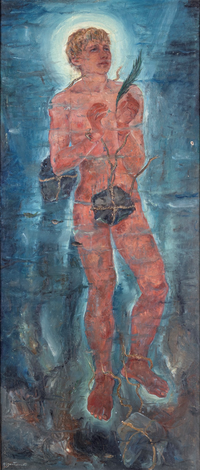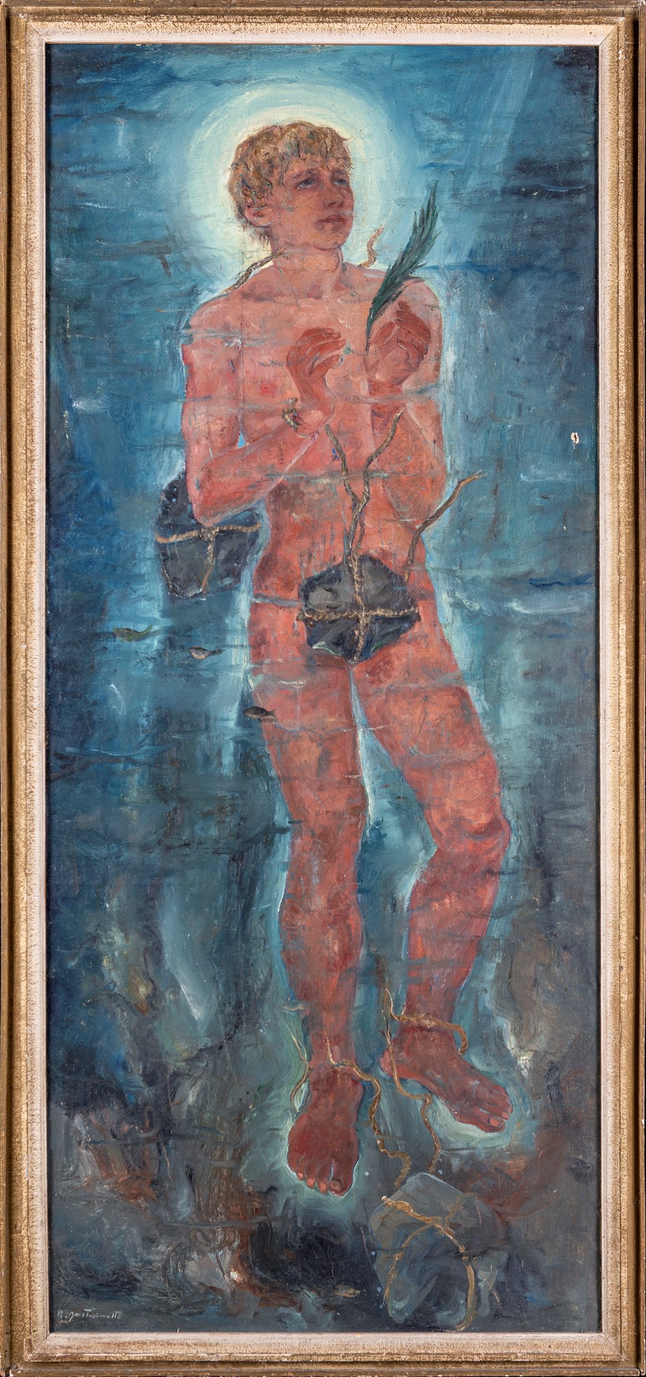 Renato Martinotti San Giusto Olio su tela cm 180x77 Firma in basso a sinistra...