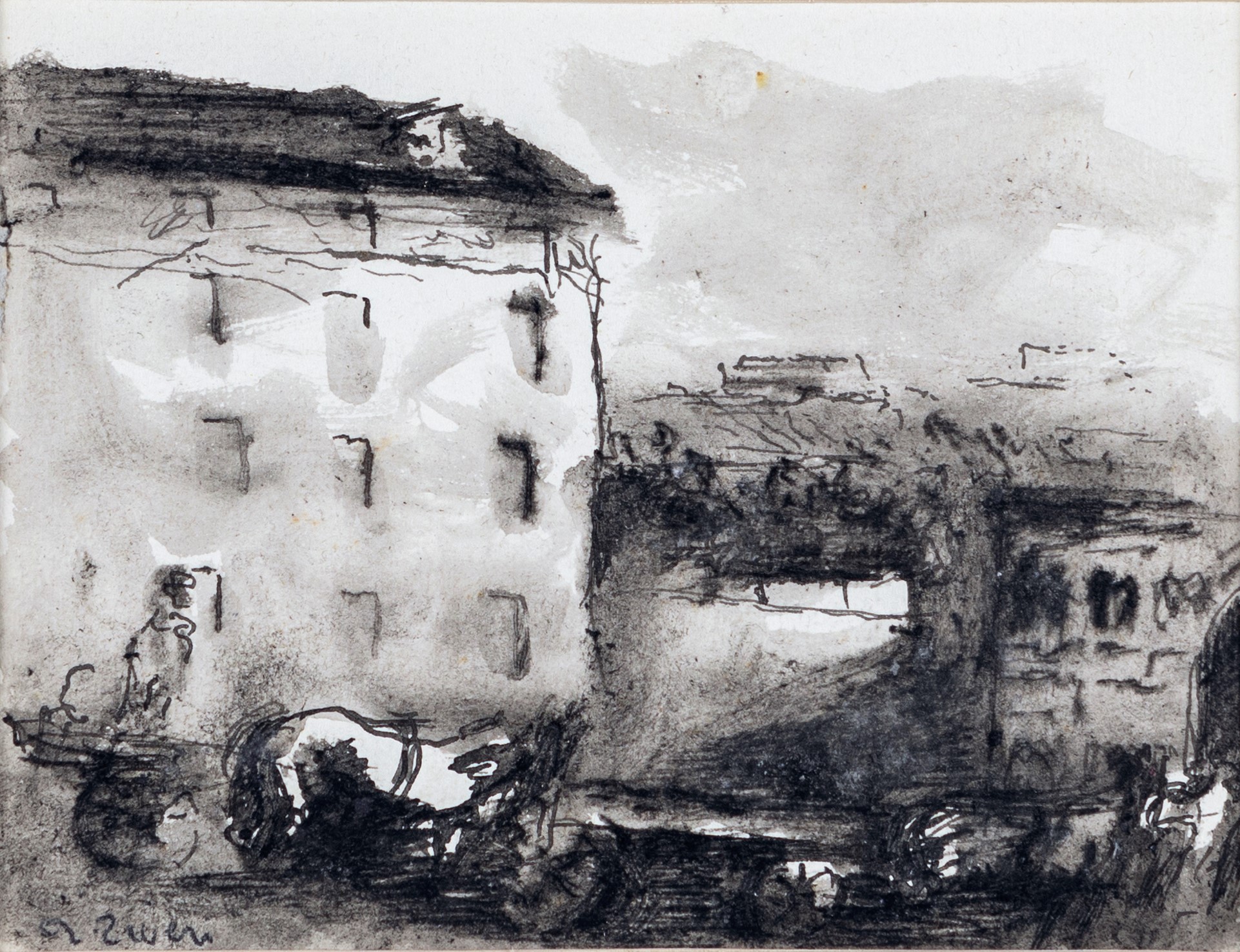 Alberto Ziveri (Roma, 1908 - Roma, 1990) Carri di buoi China e acquarello su...