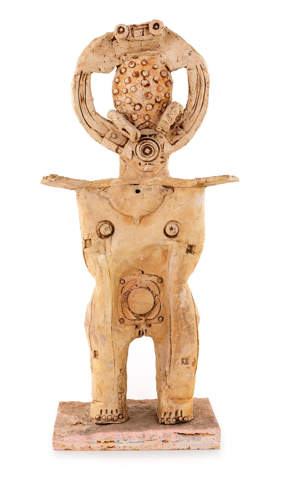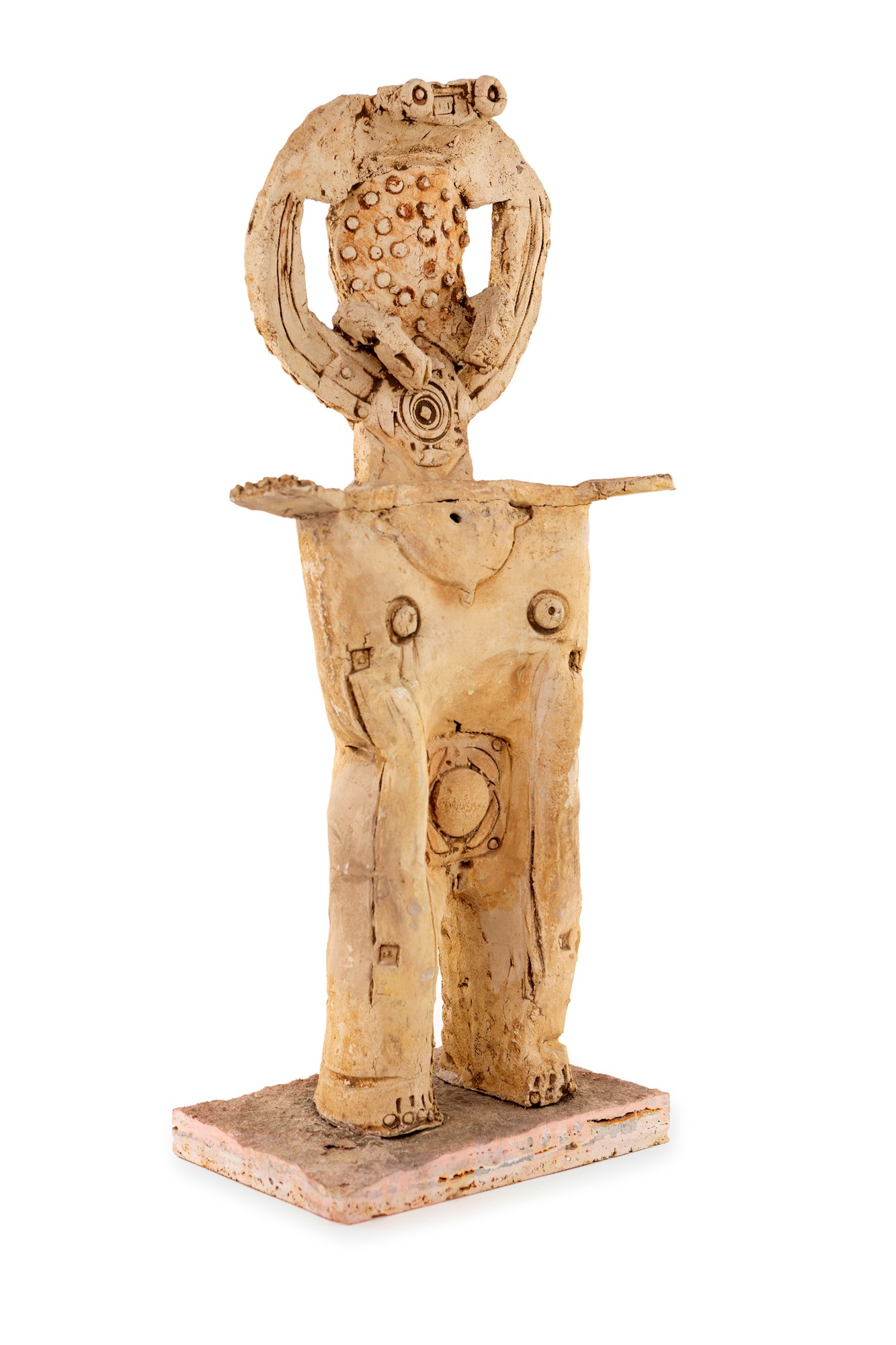 Scultura in ceramica cm 62x31x11 (base in travertino cm 3,5x18,26 ca)